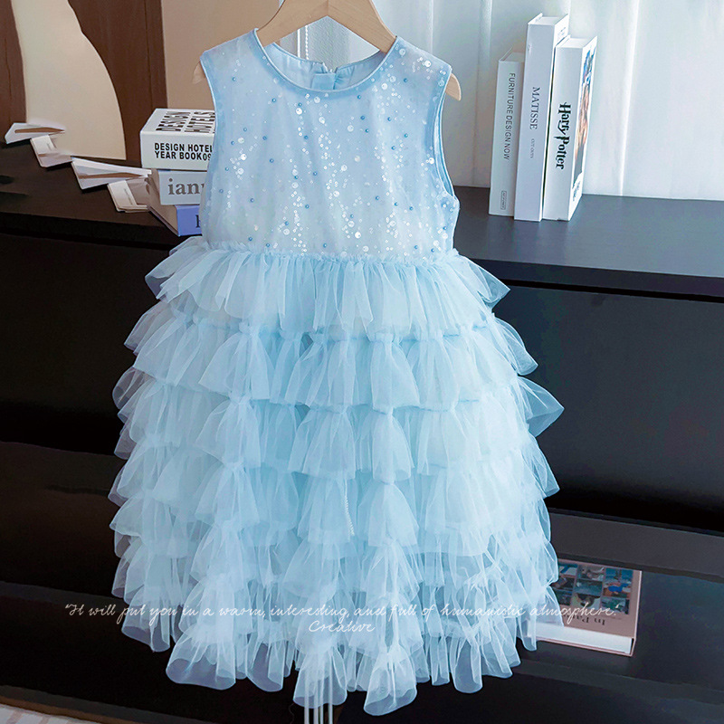 Tutu Little Elephant 2025 여름 새로운 민소매 공주 드레스 어린이 드레스 소녀 스커트 케이크 스커트 도매스토어 가기