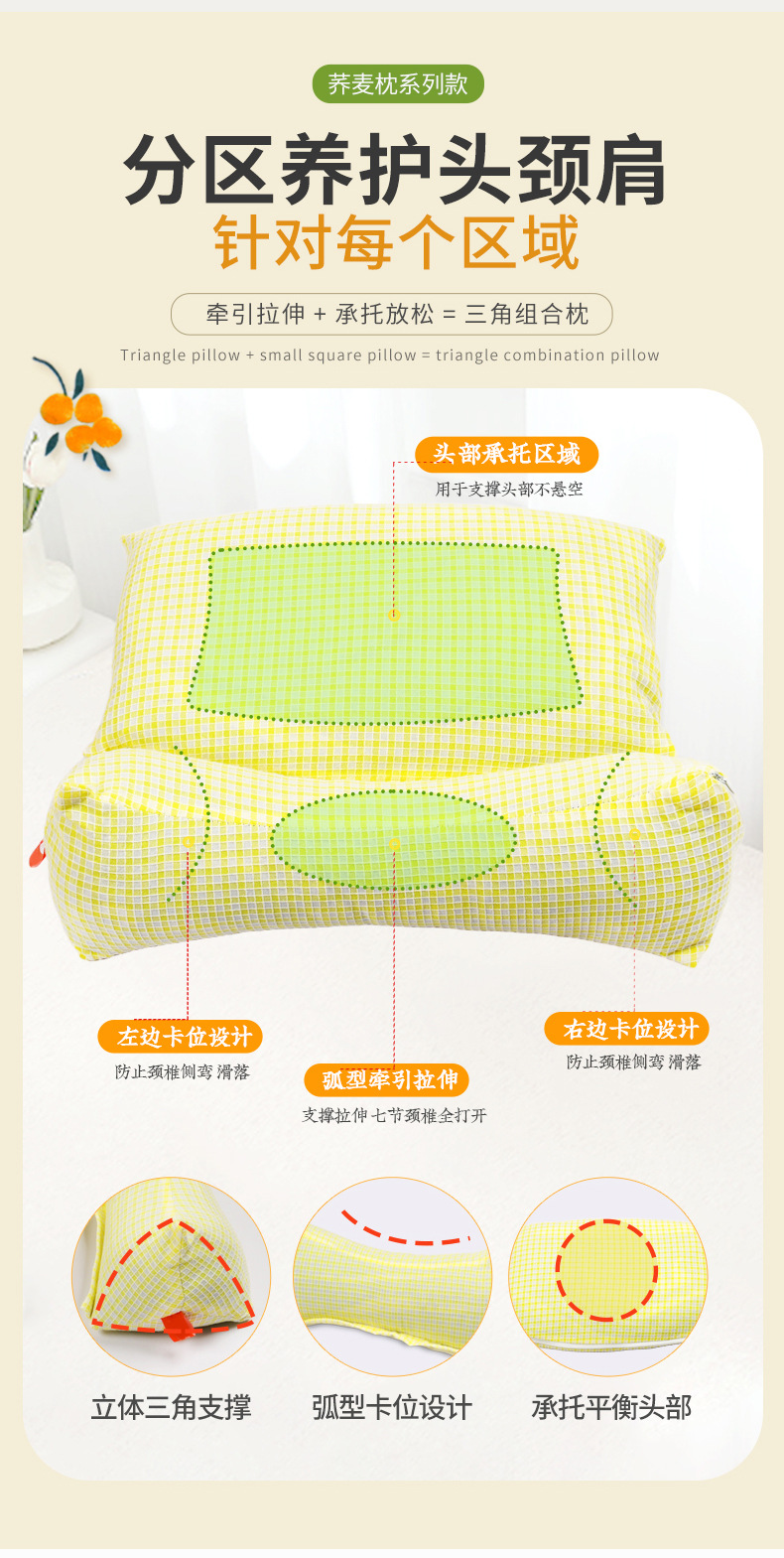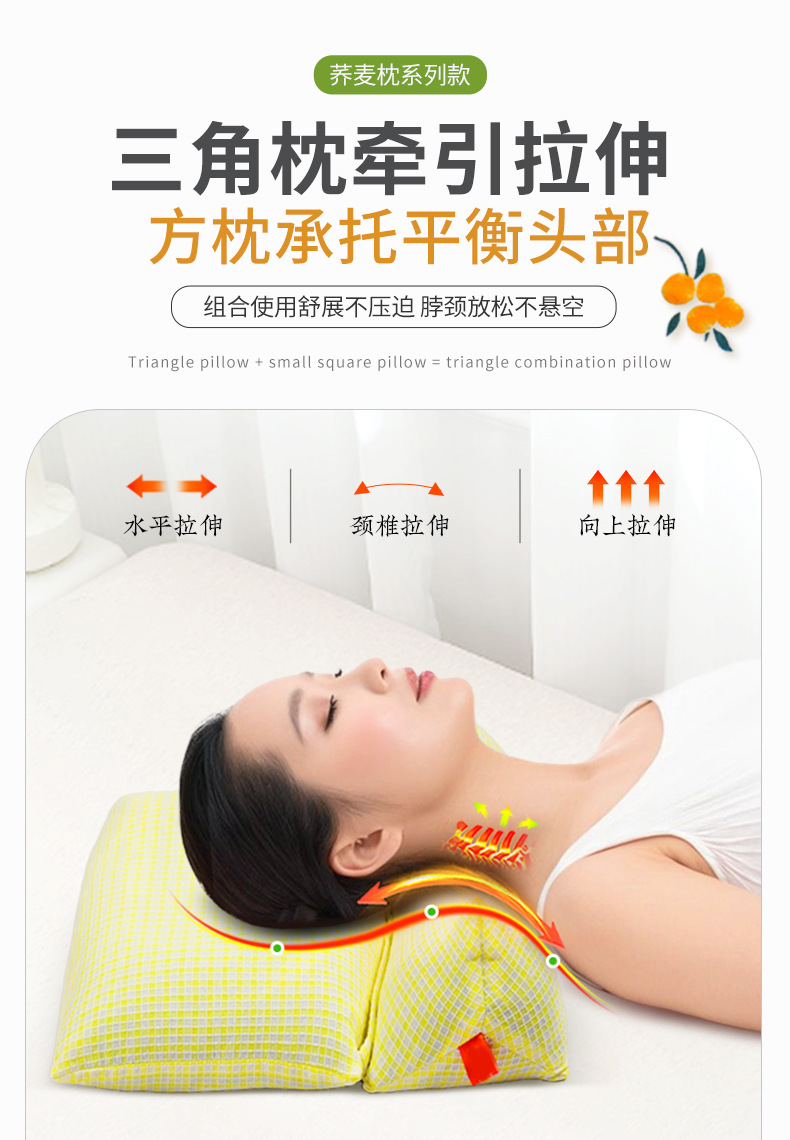 메밀껍질 삼각형 일체형 베개 가정용 경추 보호 수면 견인 베개 성인용 분리형 조합 삼각형 베개