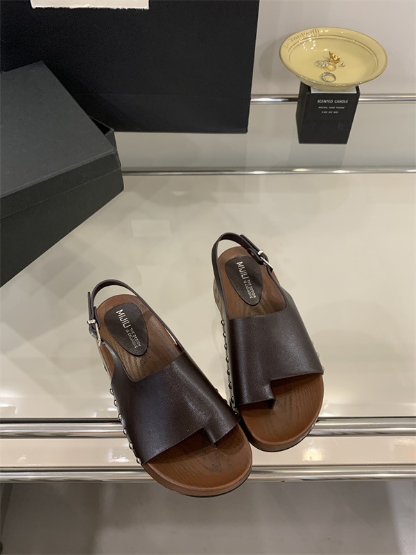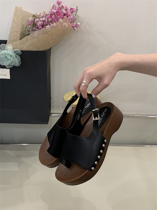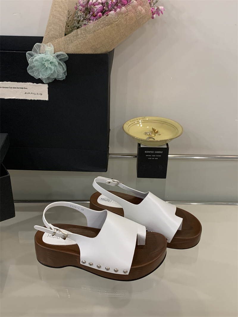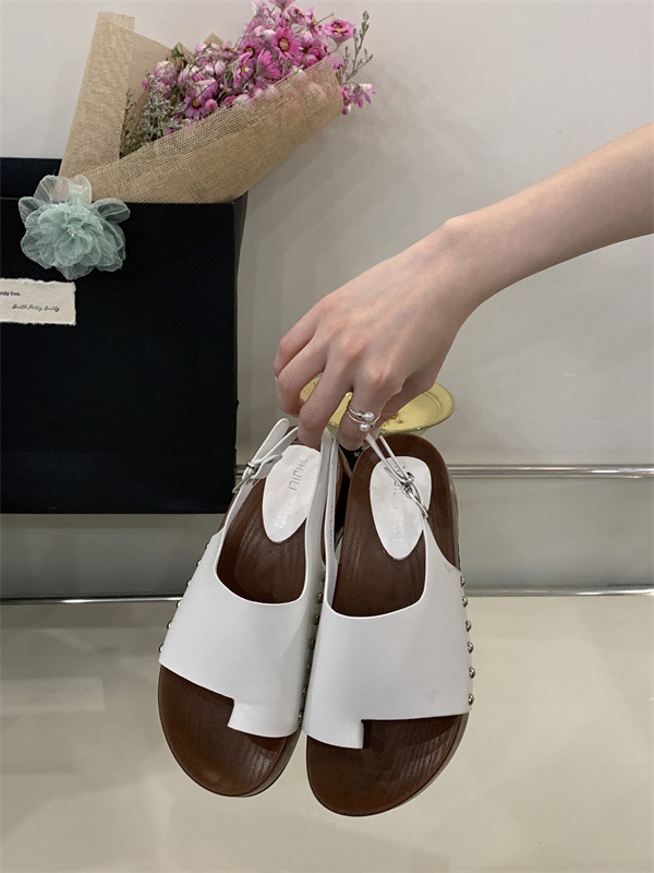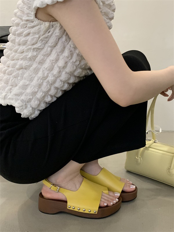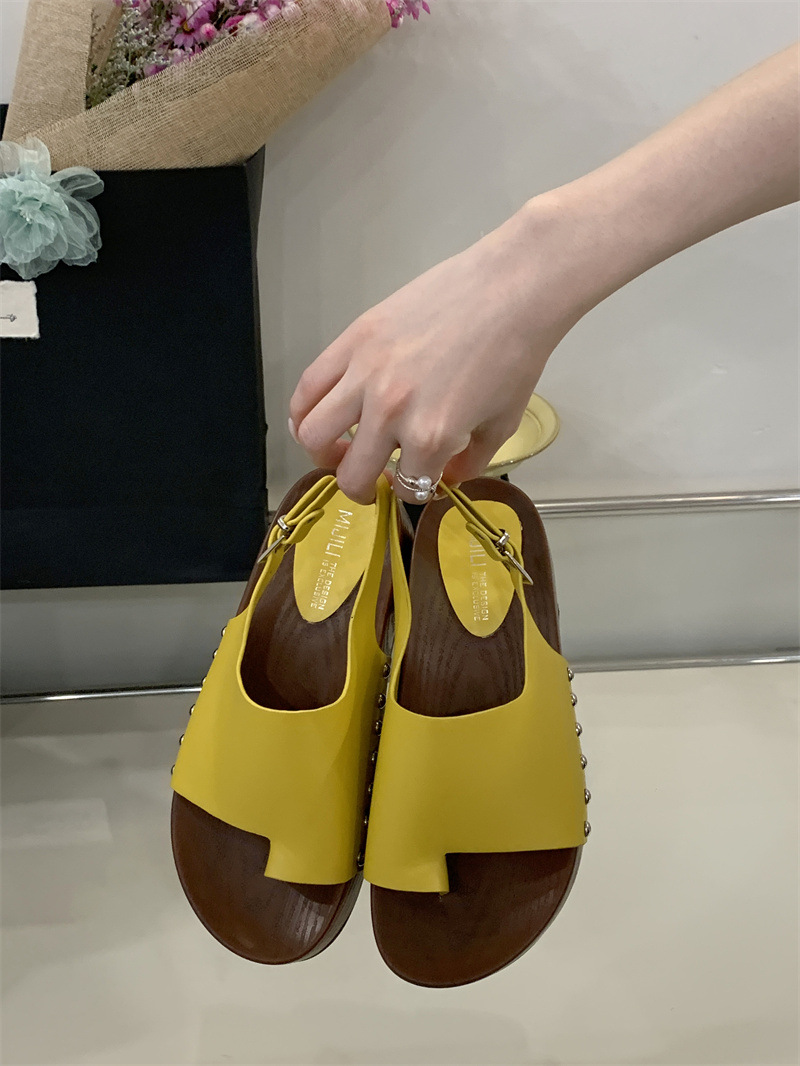 2025 새로운 프렌치 슬립온 샌들, 복고풍 두꺼운 밑창 오픈 토 로마 샌들, 여성 여름 캐주얼 비치 리벳 샌들