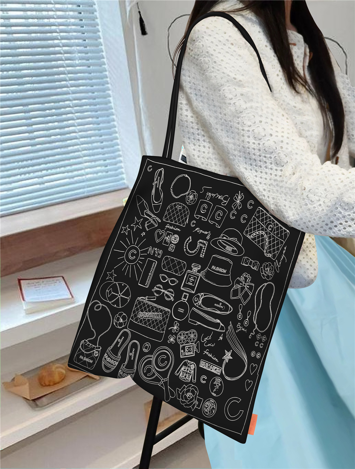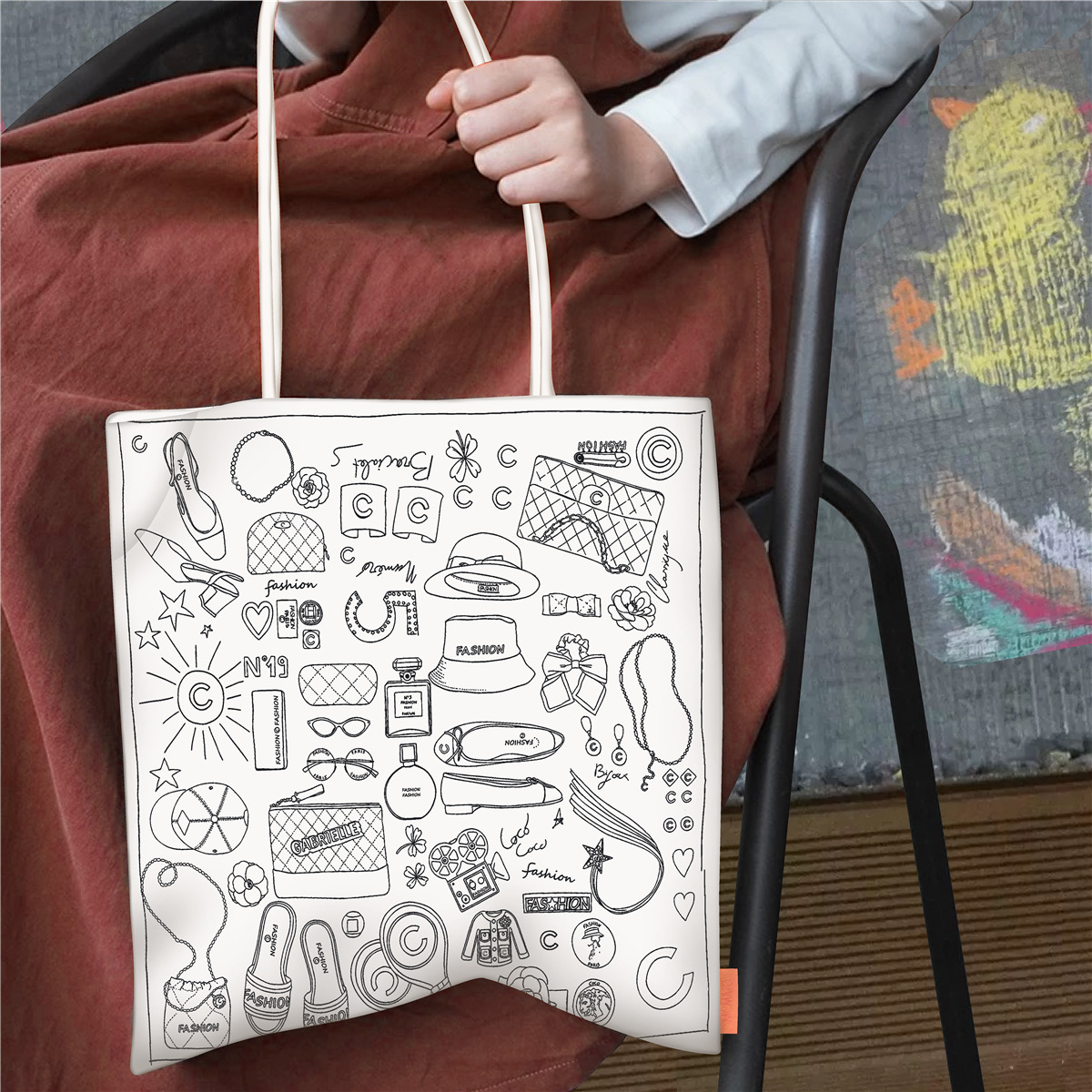 유럽과 미국의 국경 간 봄과 여름 틈새 인쇄 캔버스 가방 소 가죽 로프 핸드백 어깨 가방 경량 대용량스토어 가기