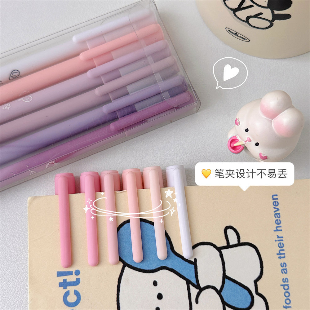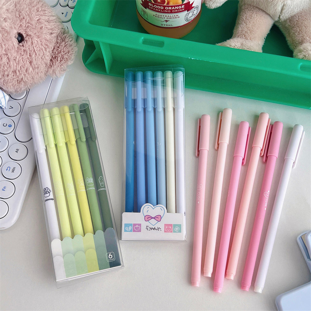 모란디 컬러 박스형 펜 고급스러운 검정색 젤펜 세트 6개입 학생 수험 문구 카본펜