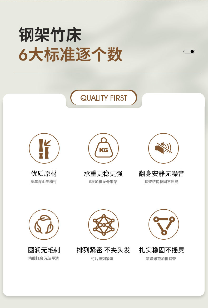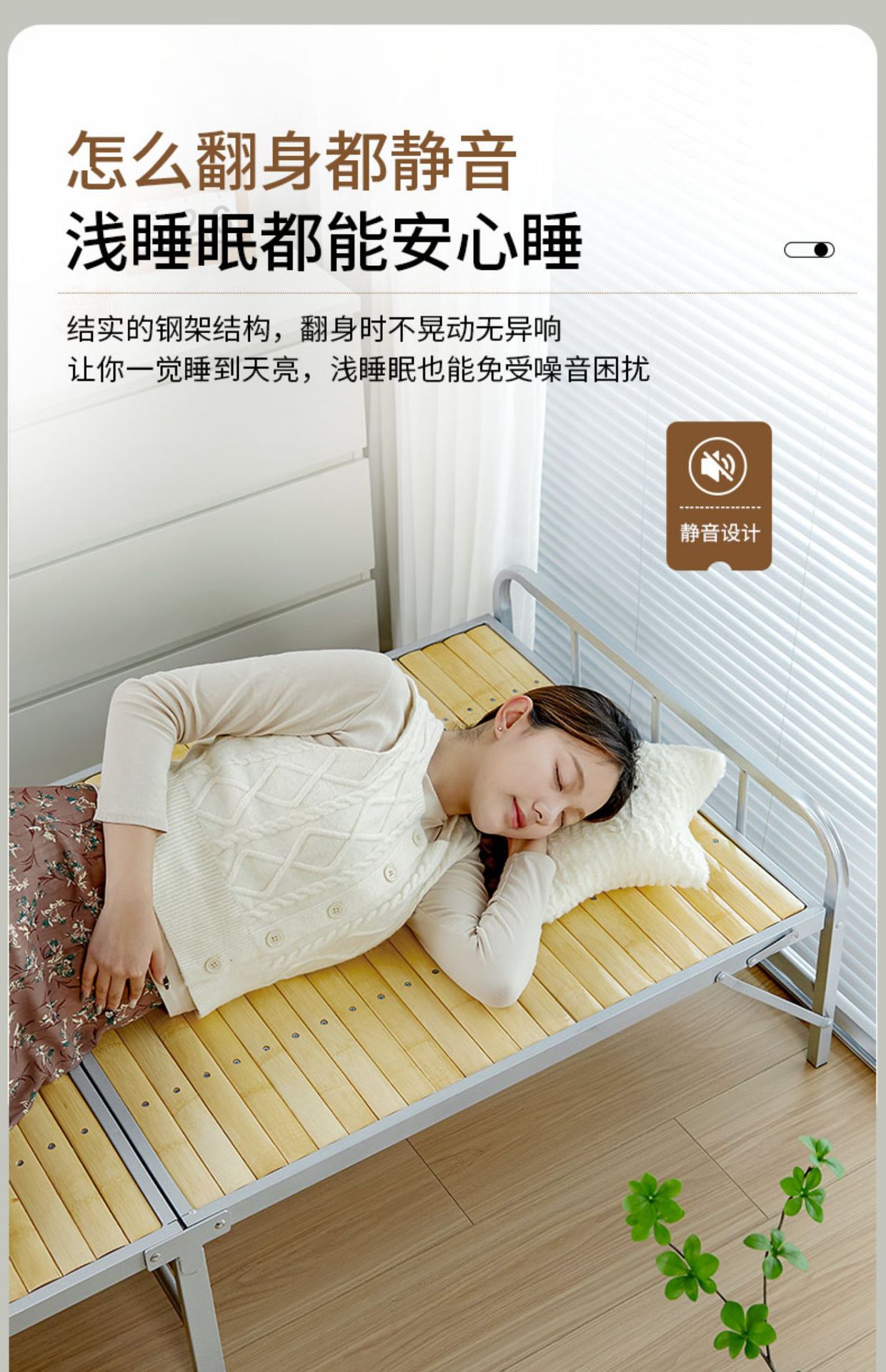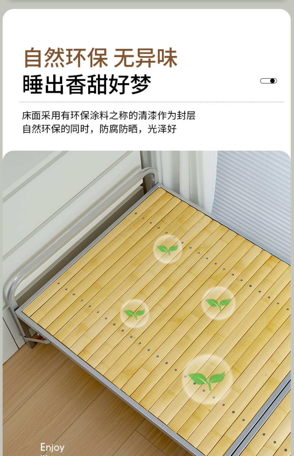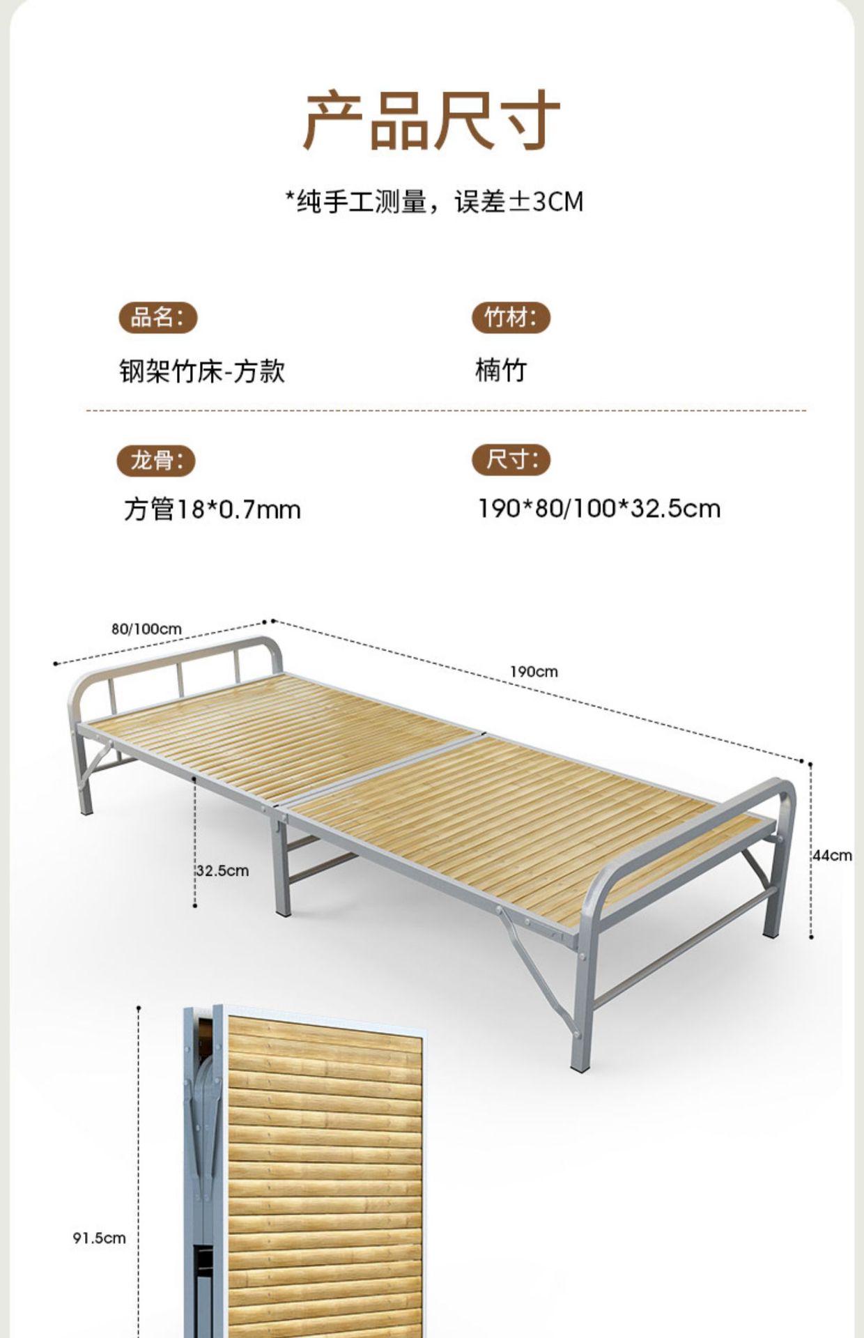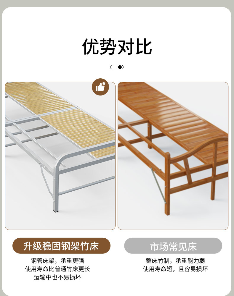 • [80CM-사각형 스타일] 철제 프레임 대나무 침대