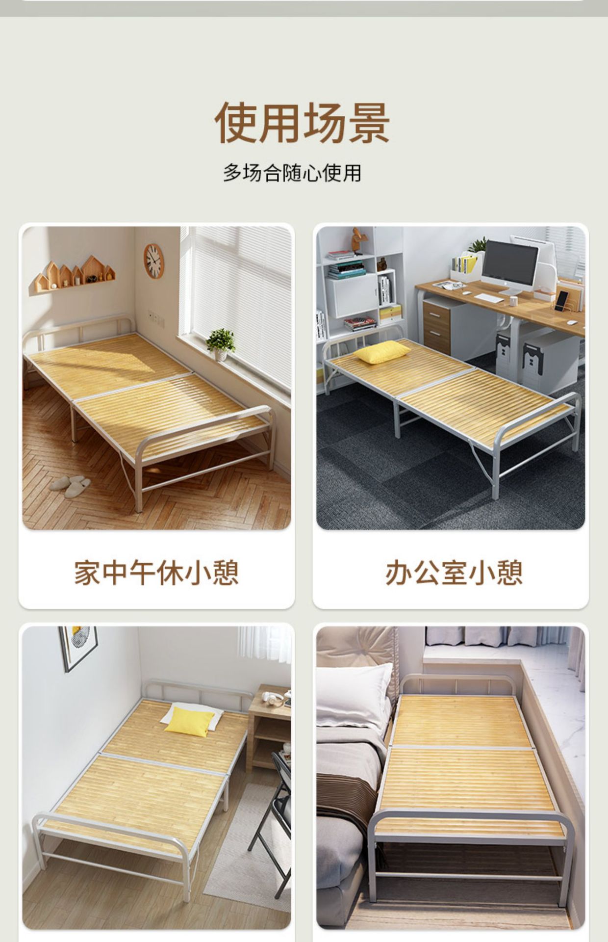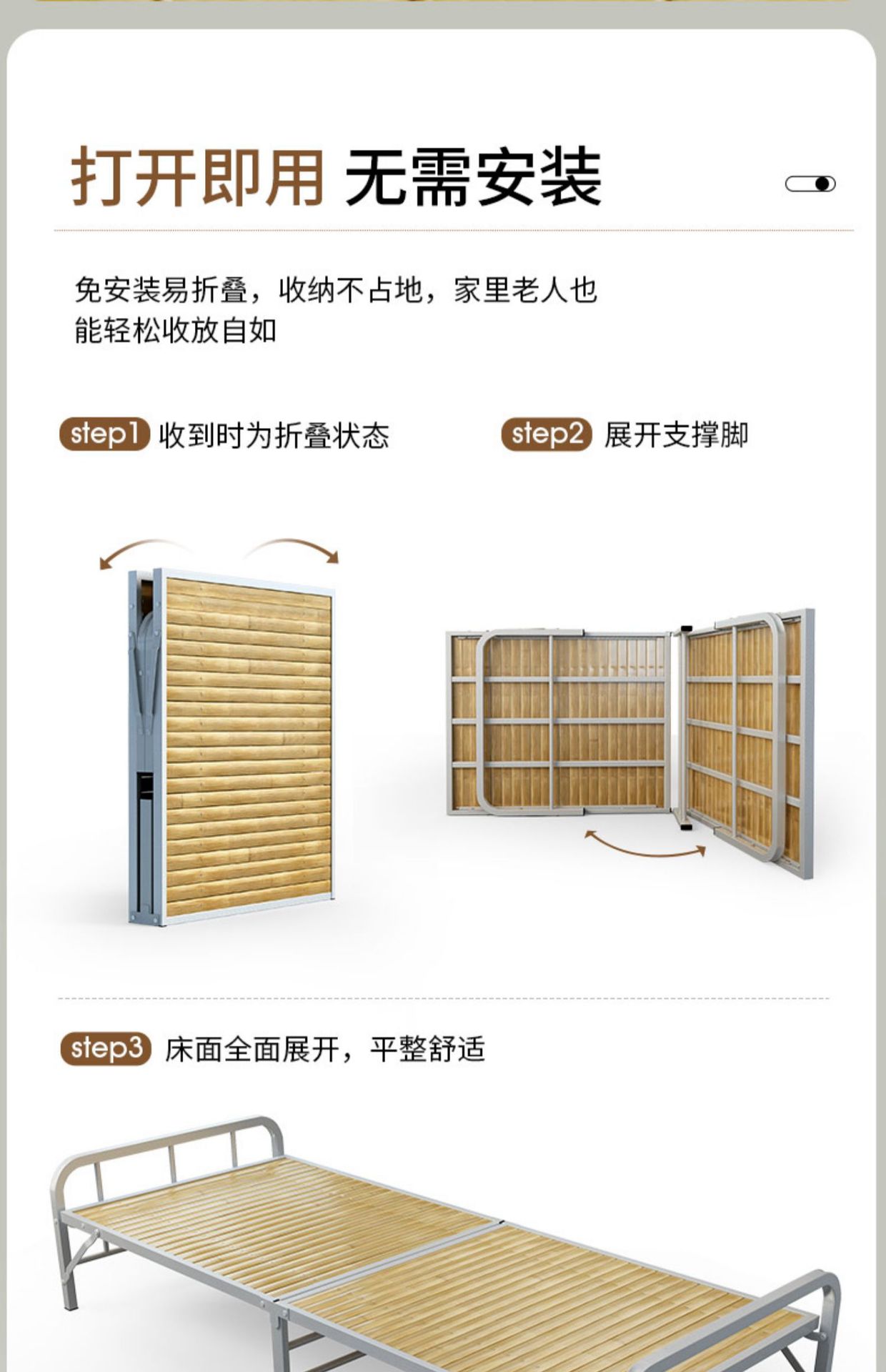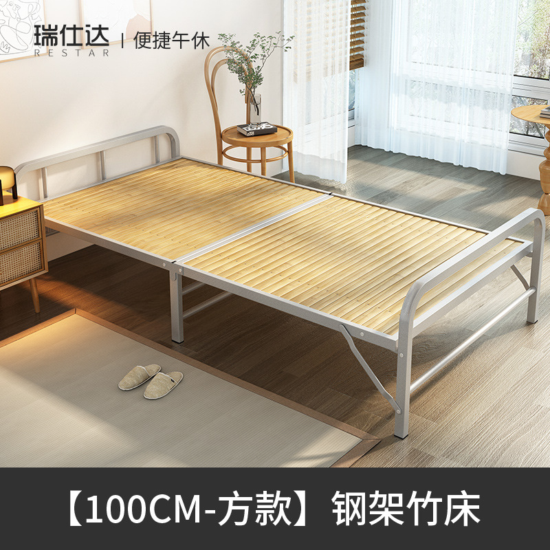 J^ 접이식 침대 싱글 침대 가정용 1m 1.2m 강화 철제 프레임 하드 보드 임대 주택 접이식 휴대용 소형스토어 가기