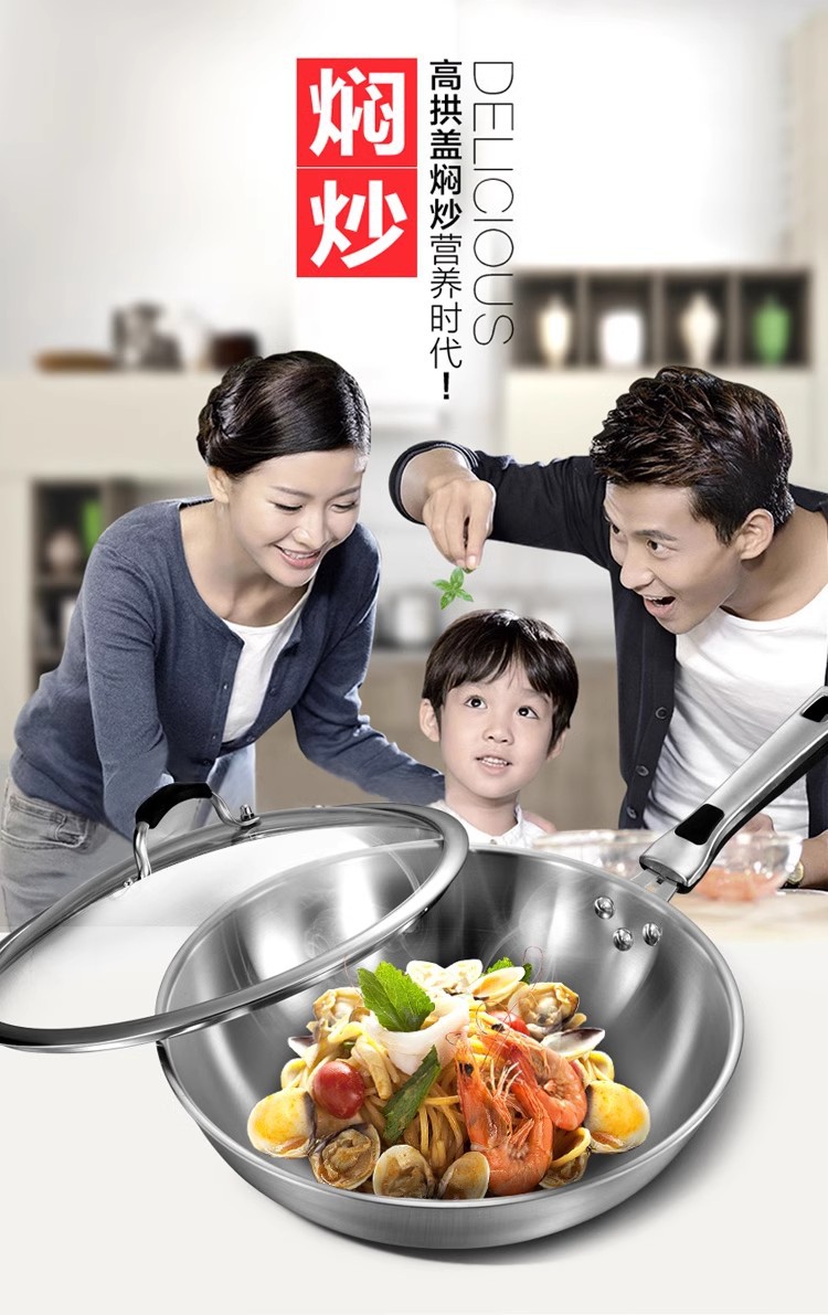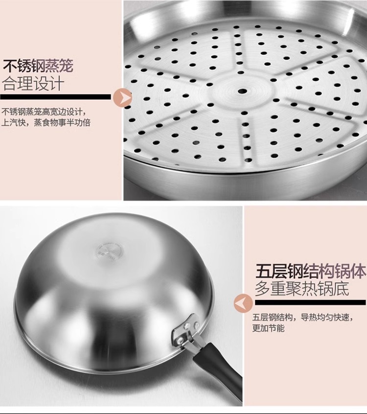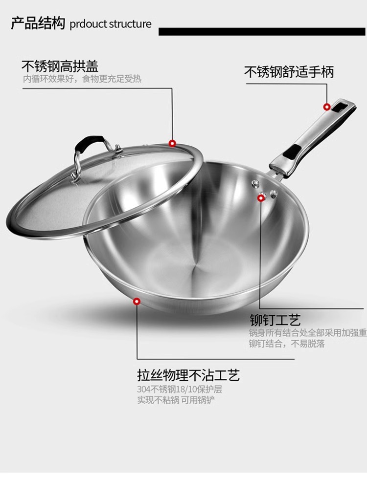 코팅 된 304 스테인레스 스틸 적합한 비 스틱 Wok Wok 가정용 독일 Wok 유도 쿠커 무연 가스스토어 가기