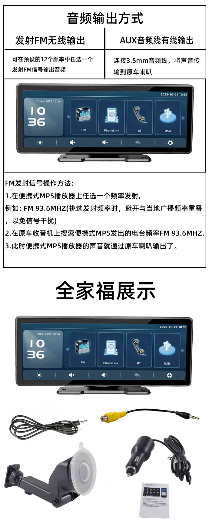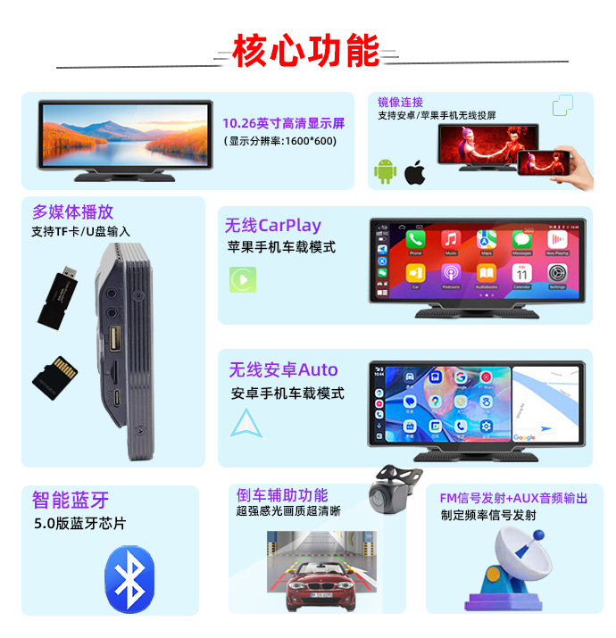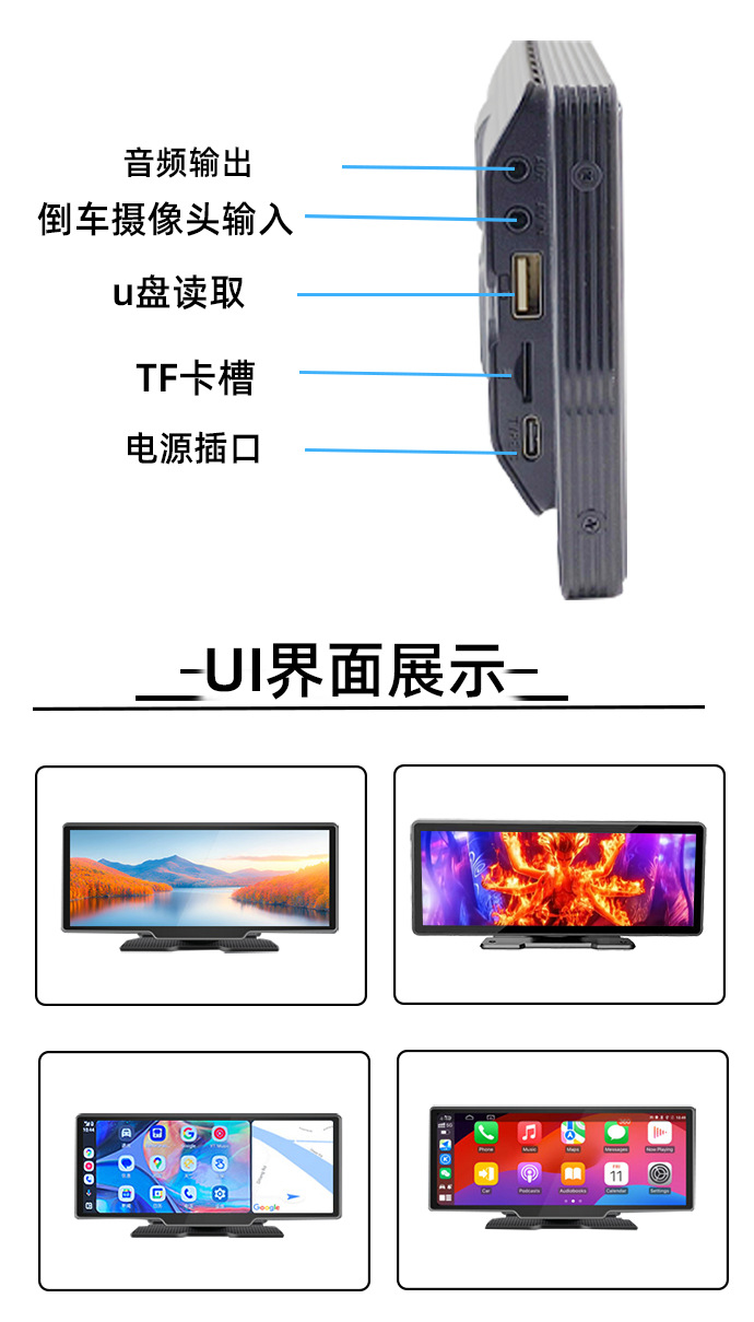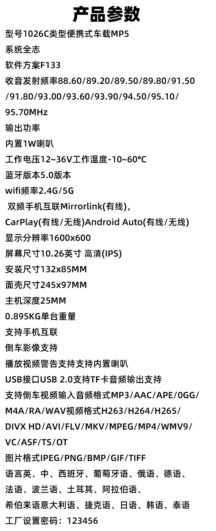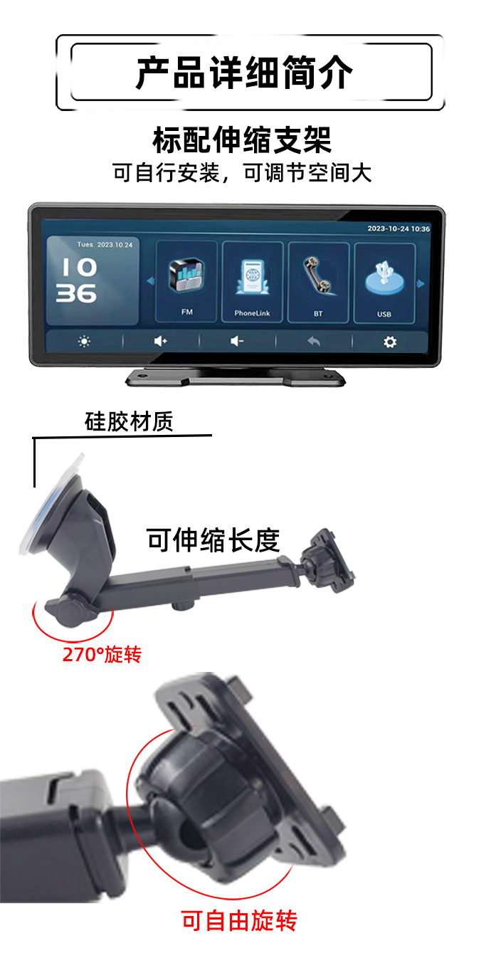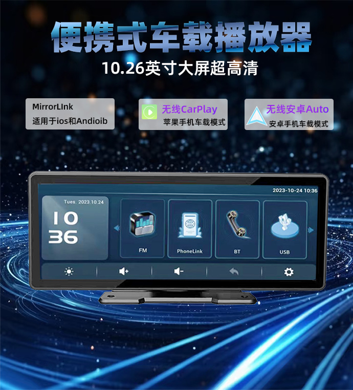 10.26inch 휴대용 스크린 자동차 MP5 플레이어 무선 carplay 자동차 중앙 제어 대형 스크린 반전 이미지