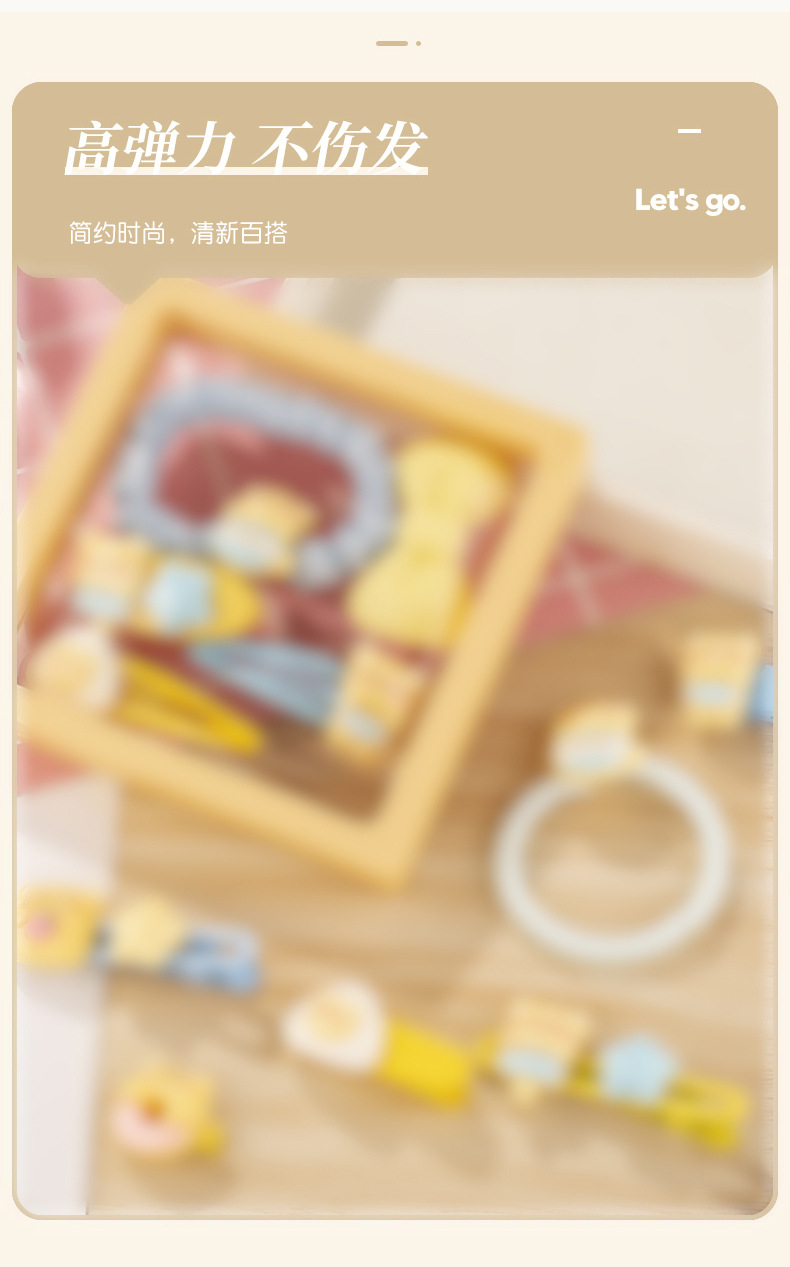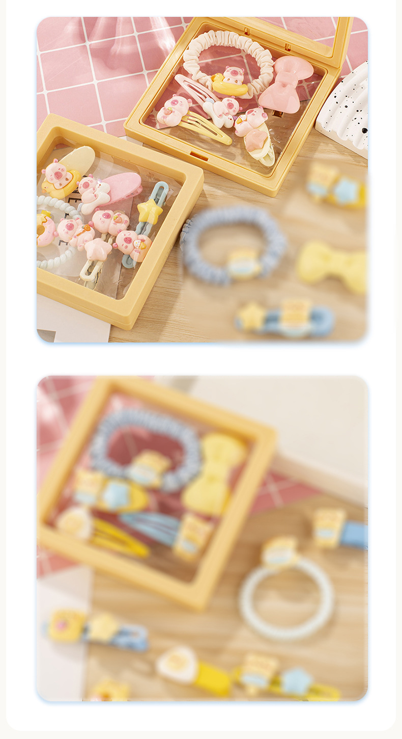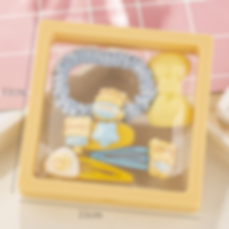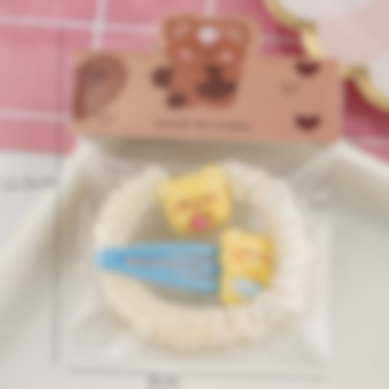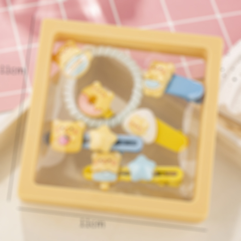 귀여운 우유 노란 곰 시리즈 머리핀 조합 소녀 달콤한 깨진 머리 앞머리 클립 높은 탄성 머리 반지 머리핀 도매스토어 가기