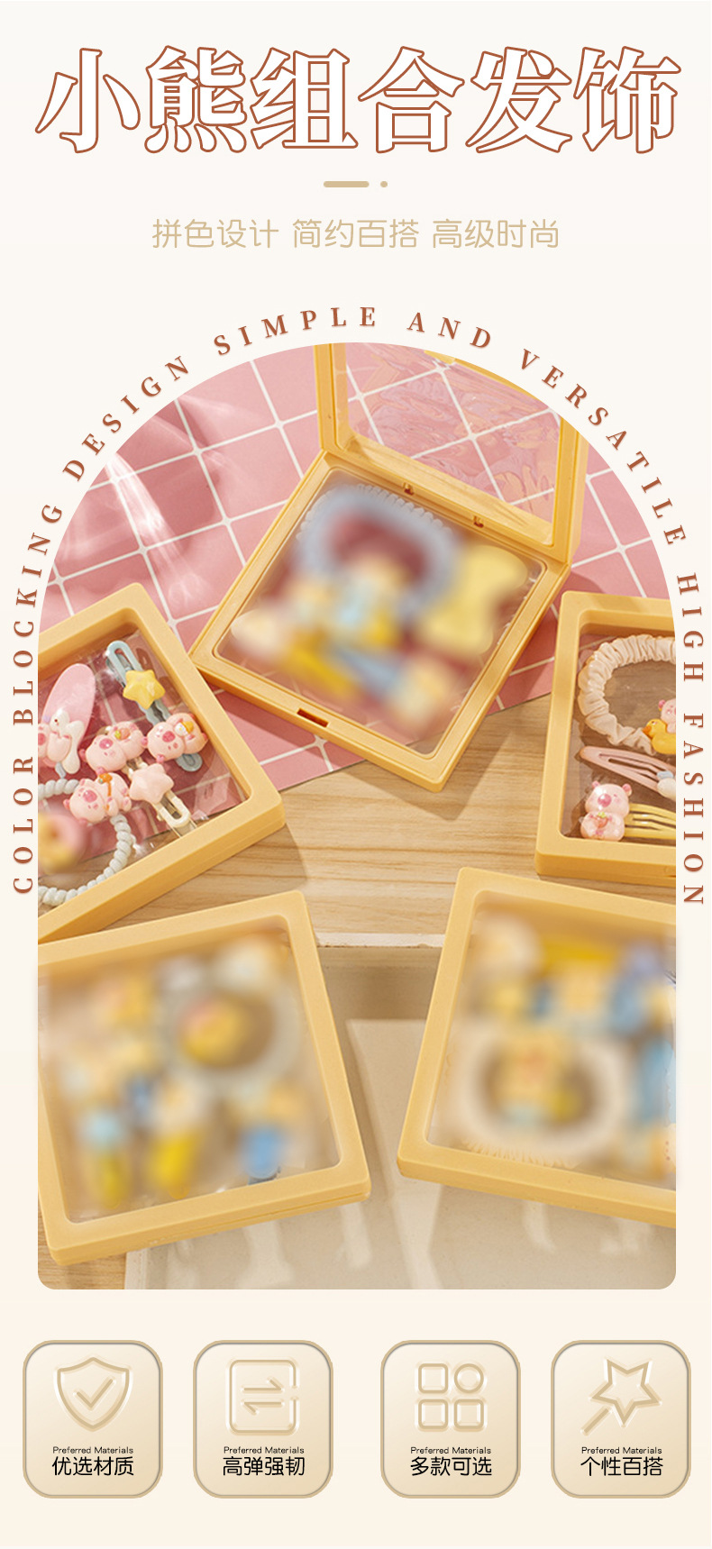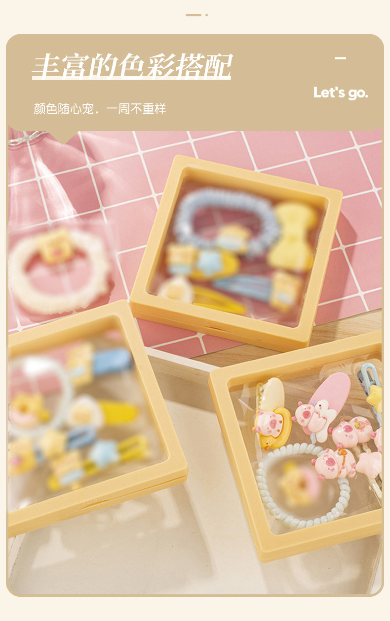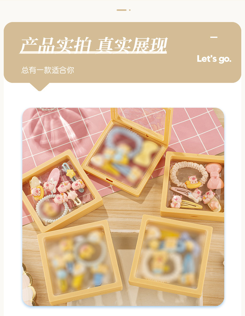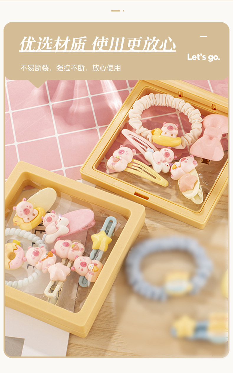 귀여운 우유 노란 곰 시리즈 머리핀 조합 소녀 달콤한 깨진 머리 앞머리 클립 높은 탄성 머리 반지 머리핀 도매스토어 가기