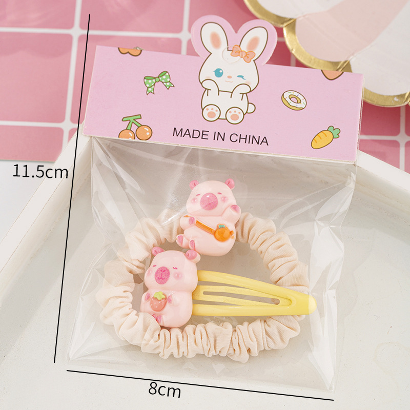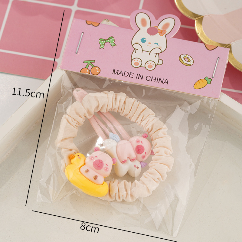 귀여운 우유 노란 곰 시리즈 머리핀 조합 소녀 달콤한 깨진 머리 앞머리 클립 높은 탄성 머리 반지 머리핀 도매