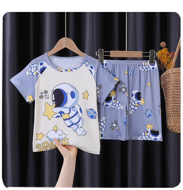 아동 잠옷 여름 반팔 얇은 2025 새로운 스타일 소년과 소녀 여름 스타일 중대형 아동복 가정복 겉옷스토어 가기