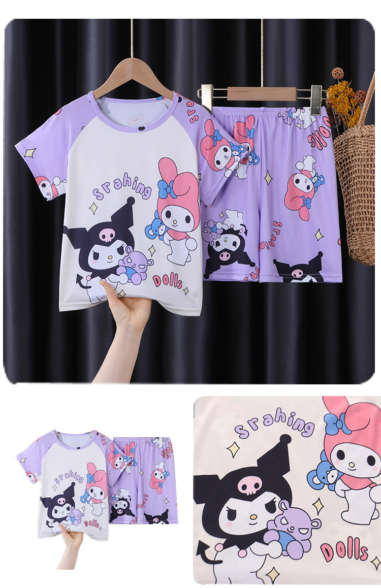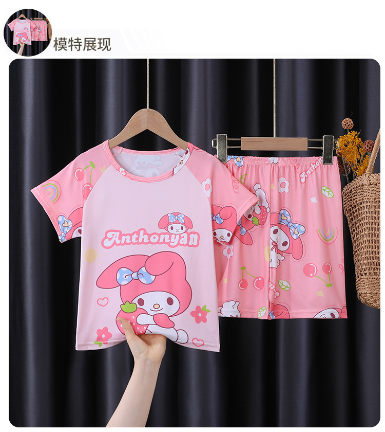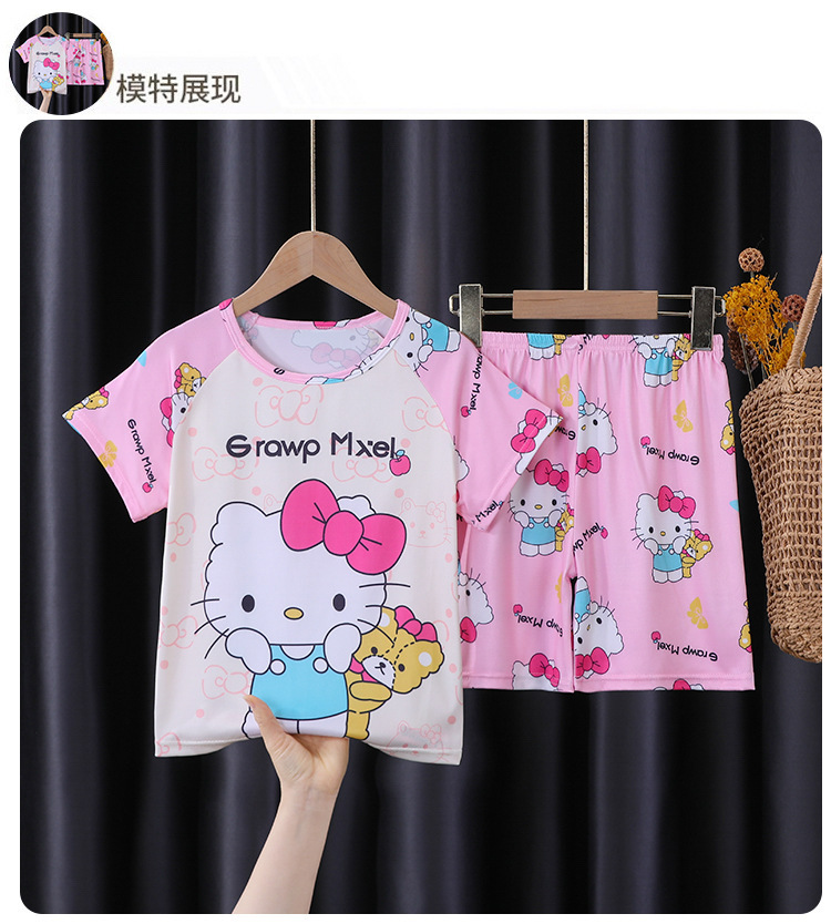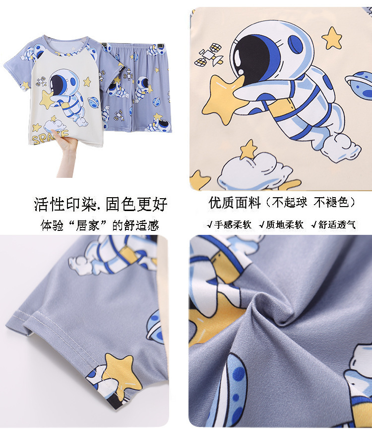 아동 잠옷 여름 반팔 얇은 2025 새로운 스타일 소년과 소녀 여름 스타일 중대형 아동복 가정복 겉옷