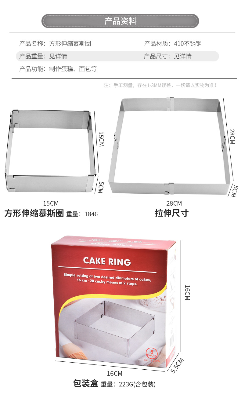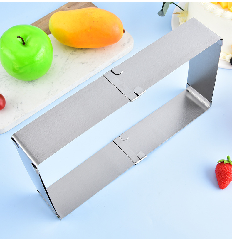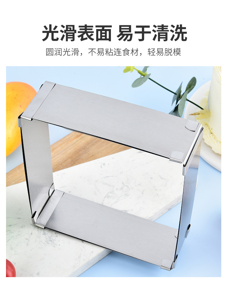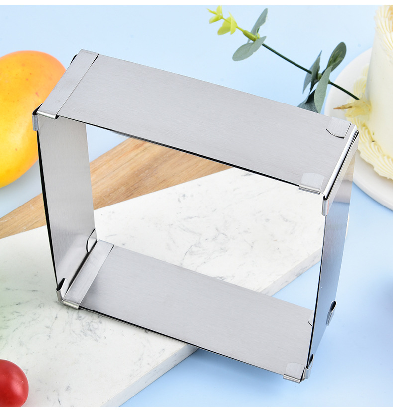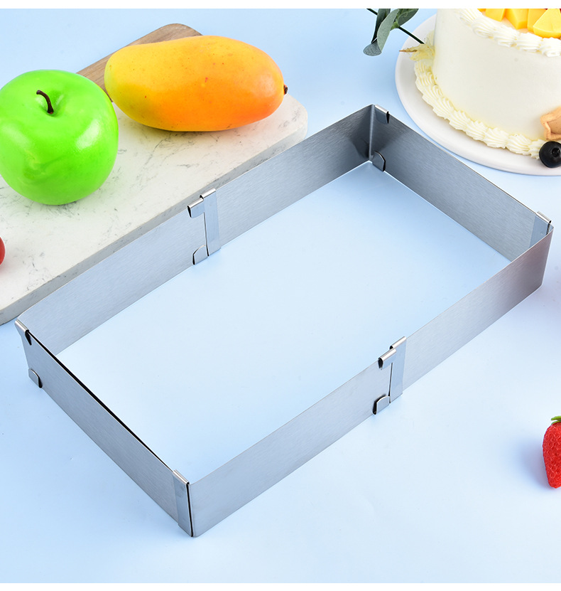 재고 대형 스퀘어 스테인레스 스틸 조정 가능한 텔레스코픽 스퀘어 무스 서클 케이크 금형 DIY 베이킹 금형스토어 가기