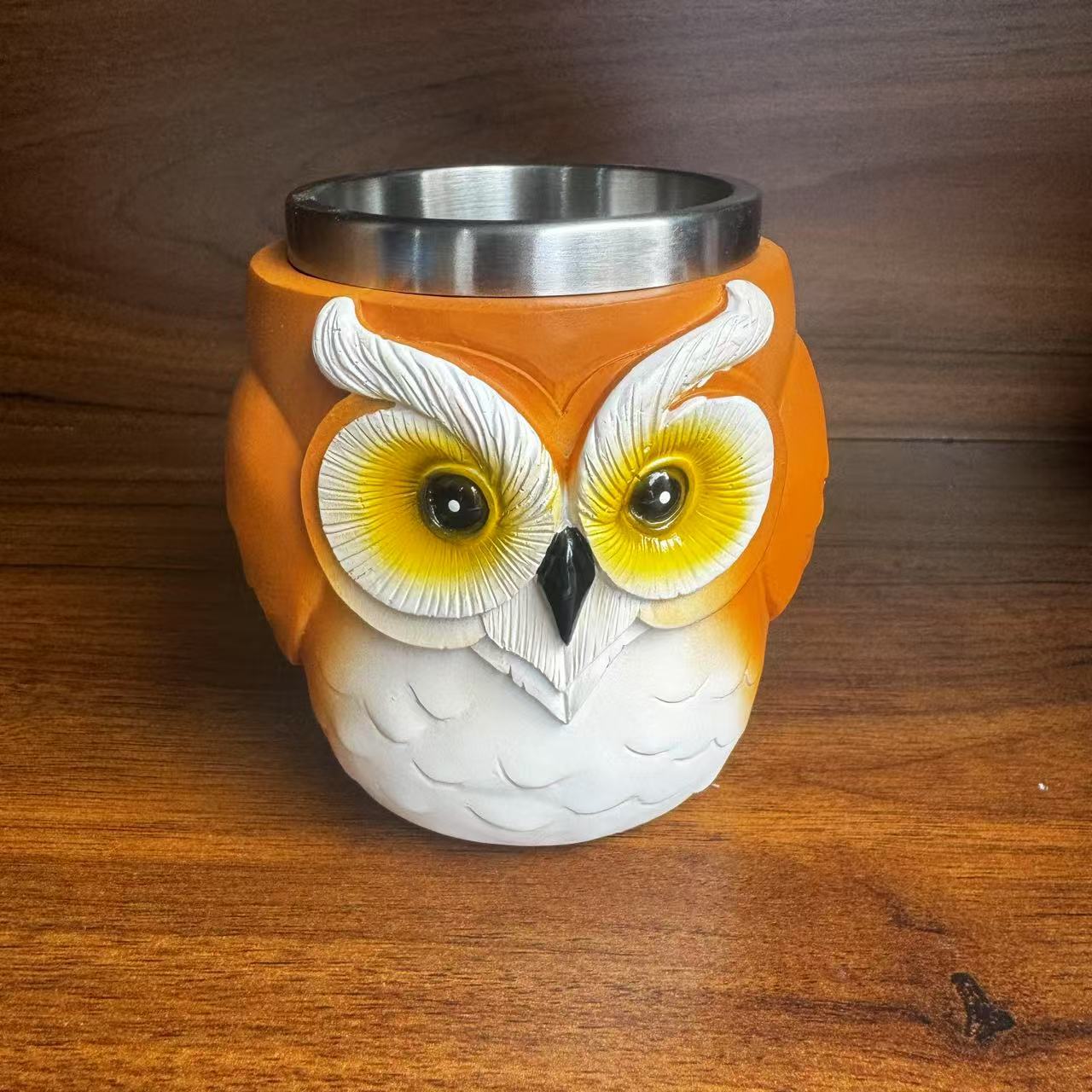 국경 간 올빼미 머그잔 커피 컵 304 스테인레스 스틸 3D 입체 수지 공예 사무실 데스크탑 장식