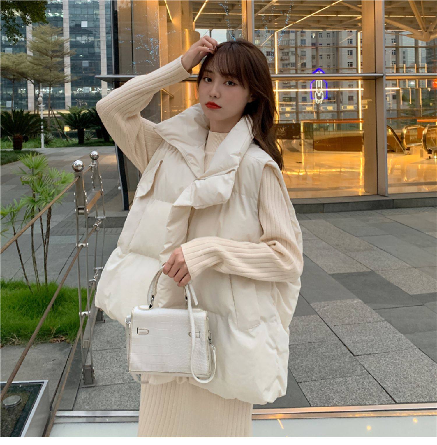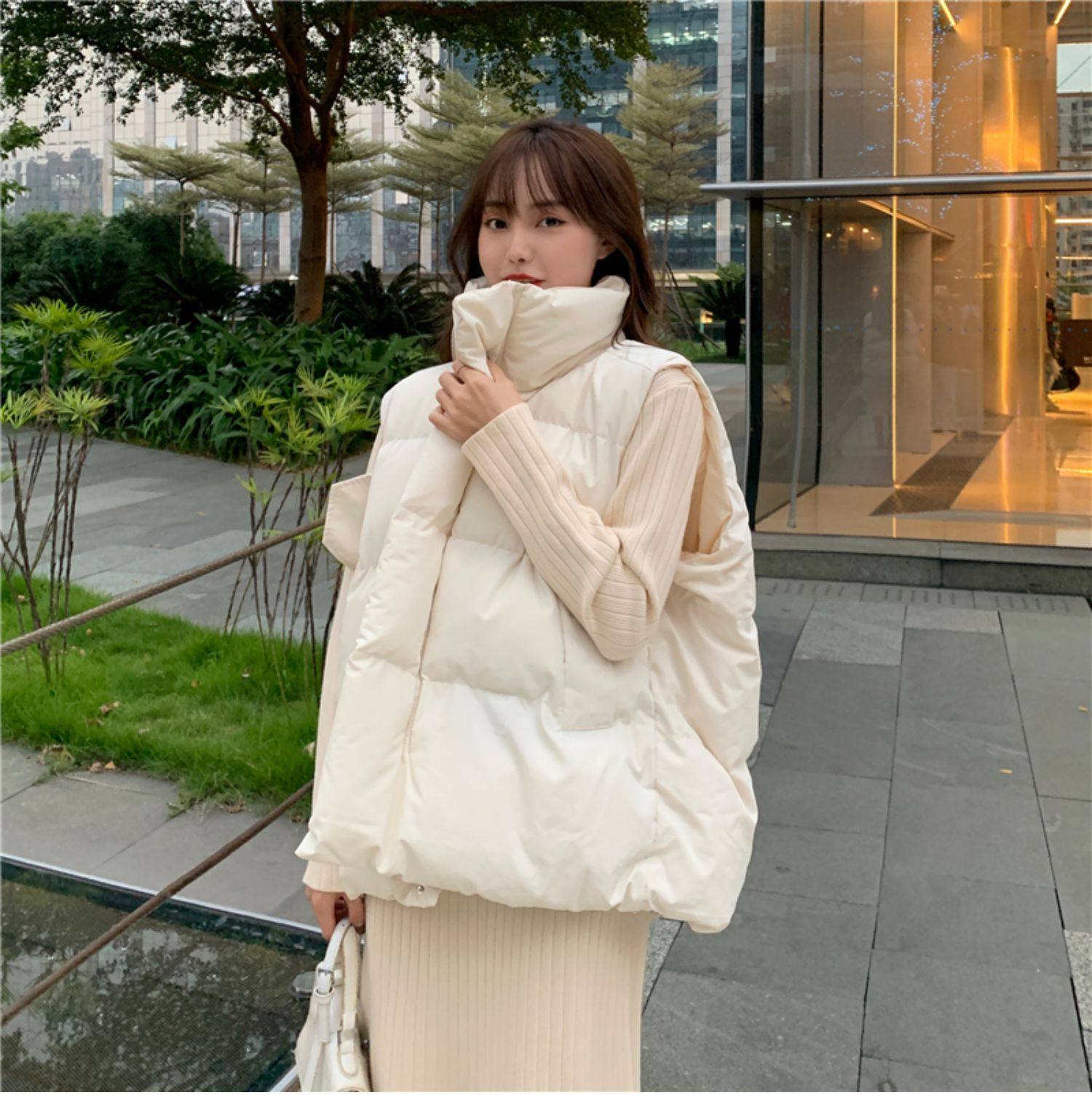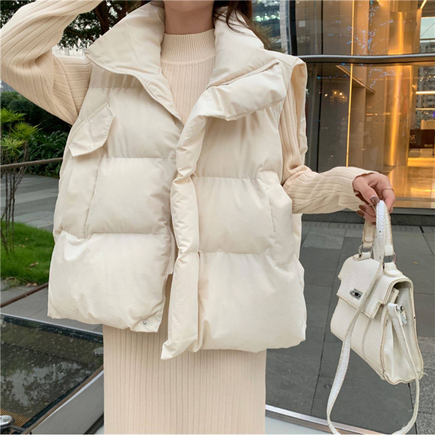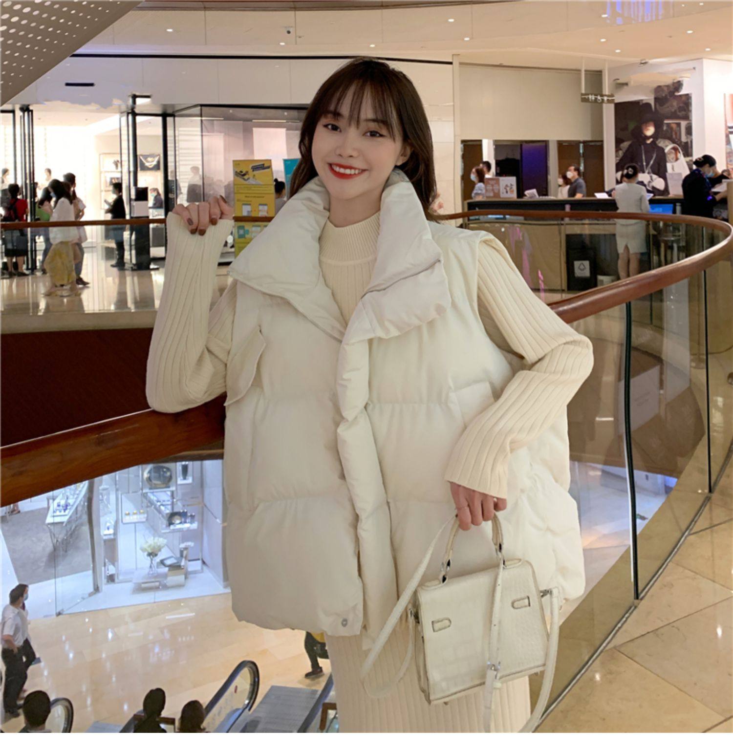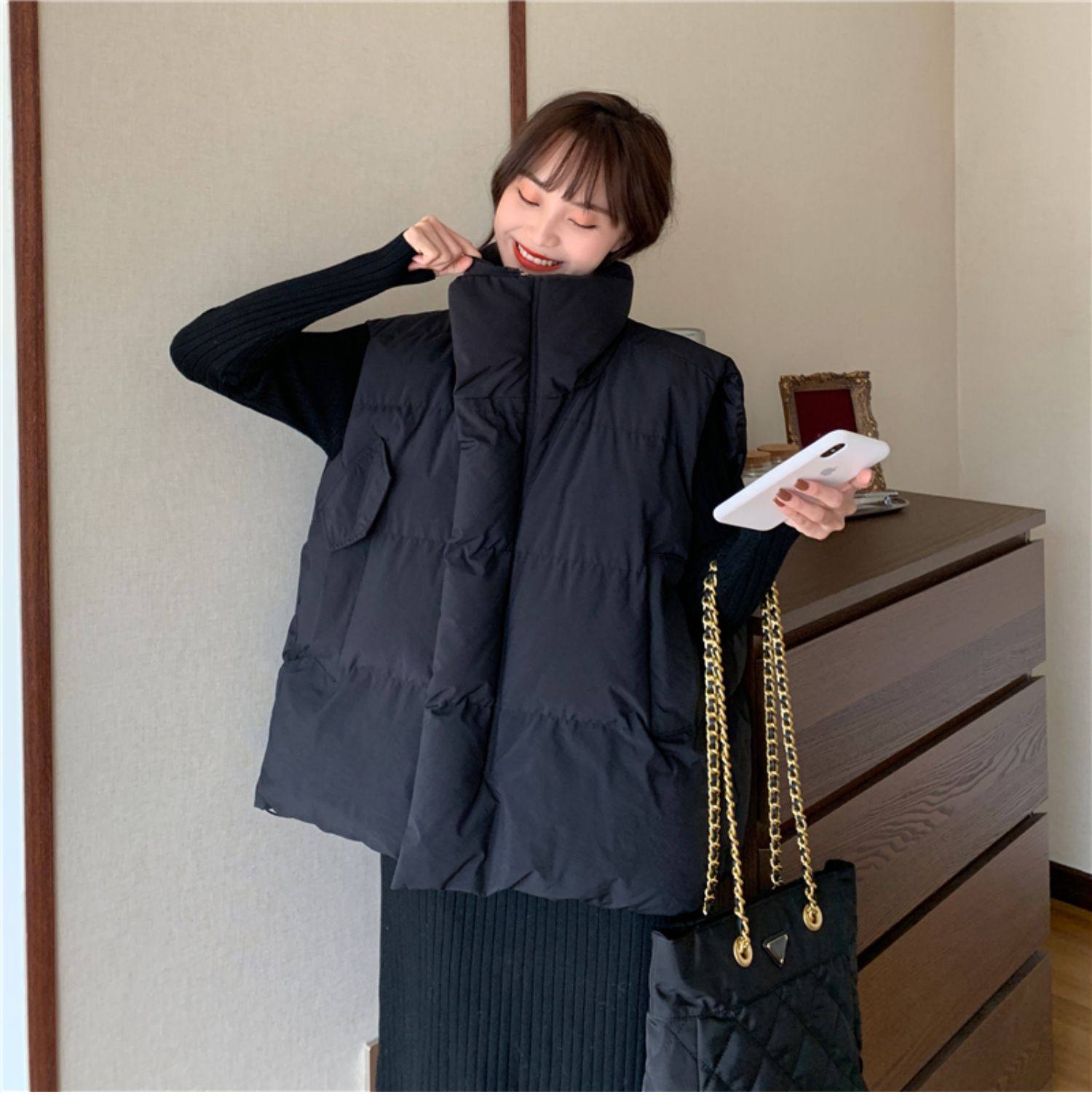 여성용 다운 코튼 조끼 2025 새로운 와이드 한국 스타일 루즈 아우터 조끼 가을 겨울 양복 조끼스토어 가기