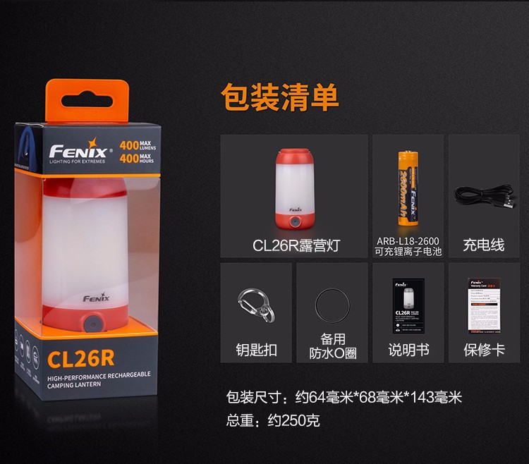 FENIX Phoenix CL26R 야외 캠핑 라이트 USB 직접 충전 캠핑 라이트 텐트 라이트 조명 손전등