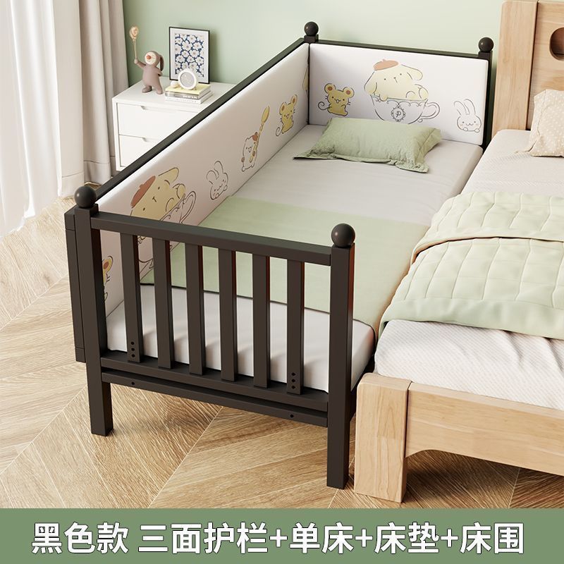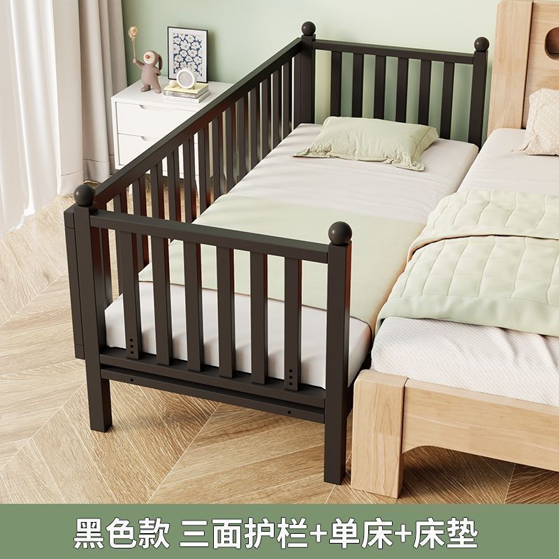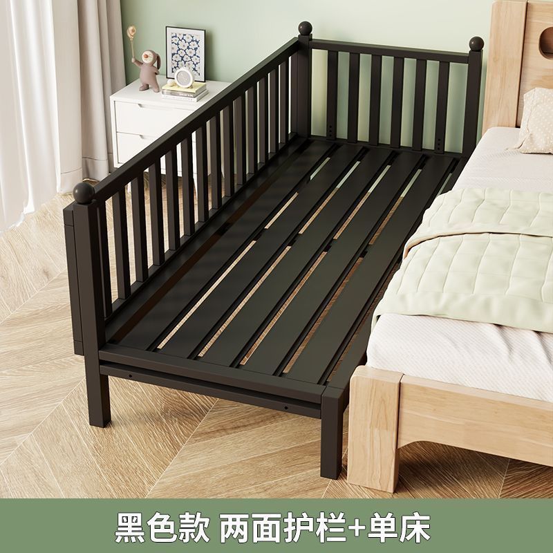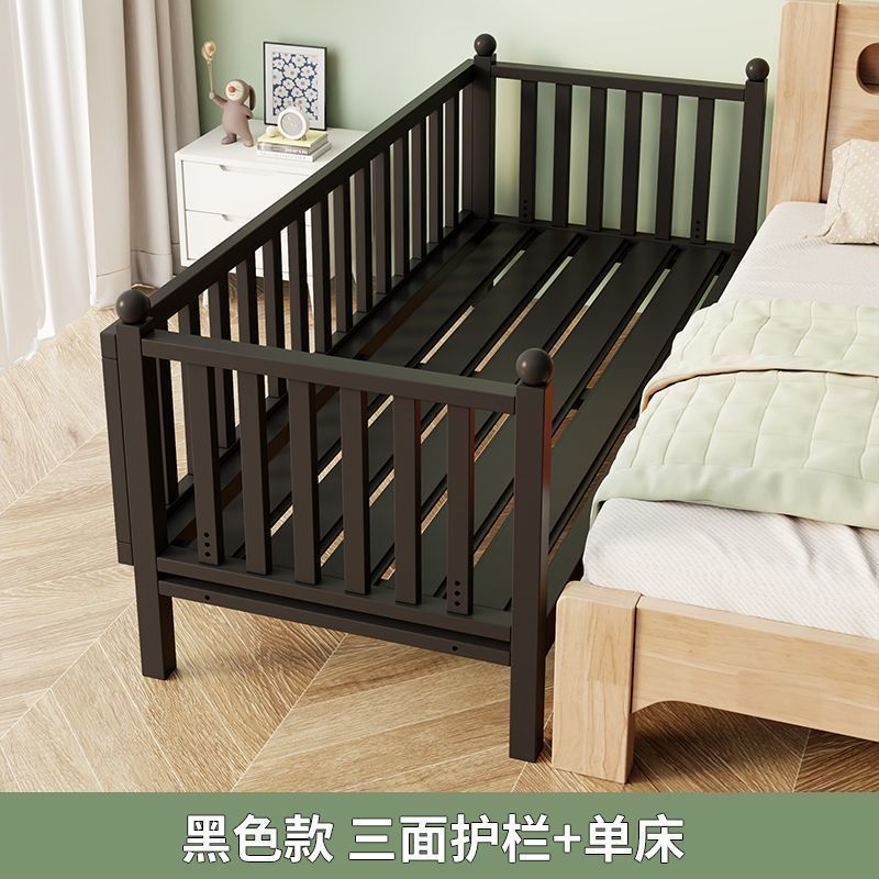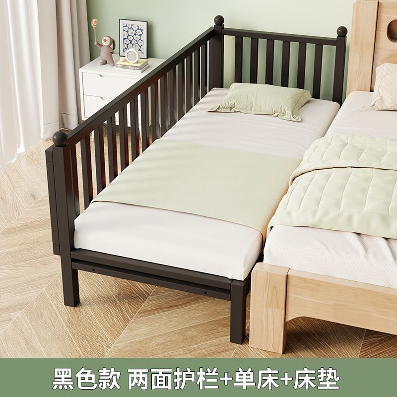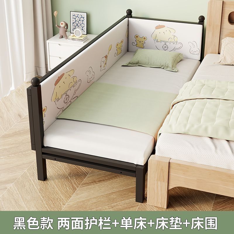 • 블랙 삼면 가드레일 싱글 침대 + 5CM 매트리스 + 침대 옆