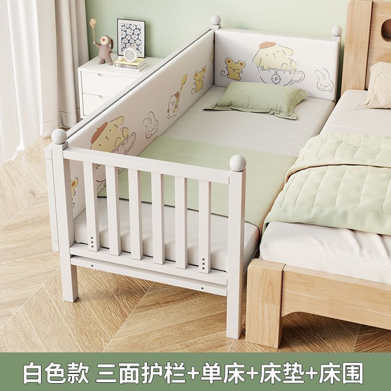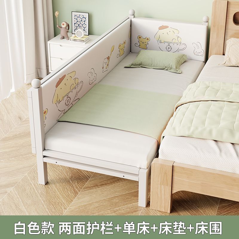 • 흰색 삼면 가드레일 싱글 침대 + 5CM 매트리스 + 침대 옆