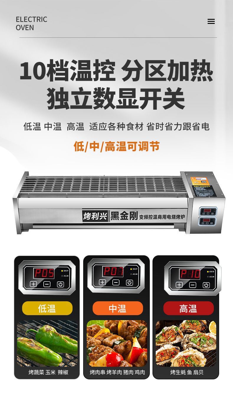 전기 그릴 상업용 무연 검은 색 킹 콩 전기 그릴 스톨 전기 구운 글루텐 구운 굴 양고기 꼬치 바베큐 스토브