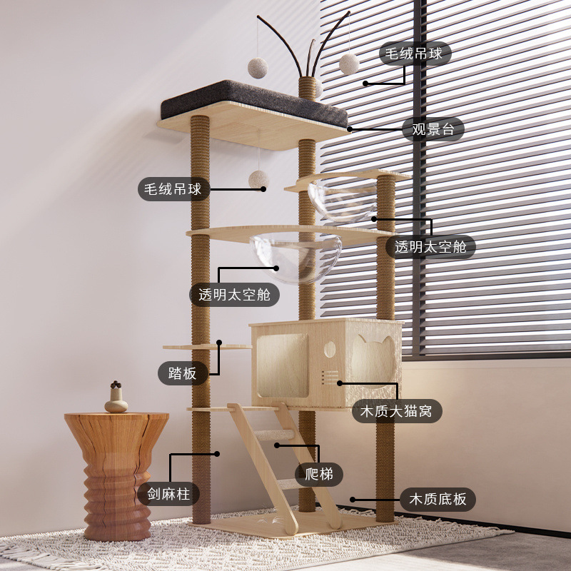 고양이 클라이밍 프레임, 고양이 둥지, 고양이 트리, 원목 다층 우주 캡슐, 고양이 점프 플랫폼, 고양이 선반, 삼나무 장난감, 고양이 용품스토어 가기