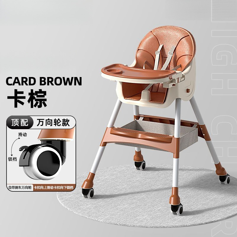 • 2단 디너접시 + 만능바퀴 + 수납바구니 + PU시트쿠션 - 브라운 [높이조절 + 일체형접이식]