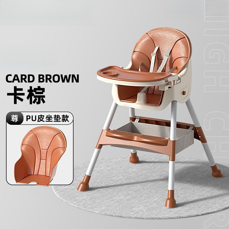 • 2단 디너접시 + 수납바구니 + PU시트쿠션 - 브라운 [높이조절 + 일체형접이식]