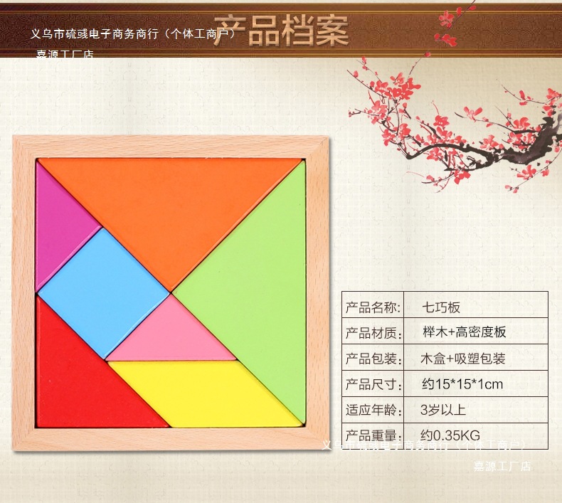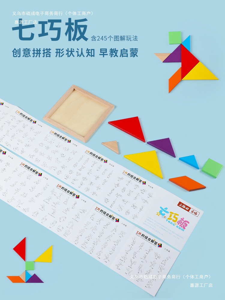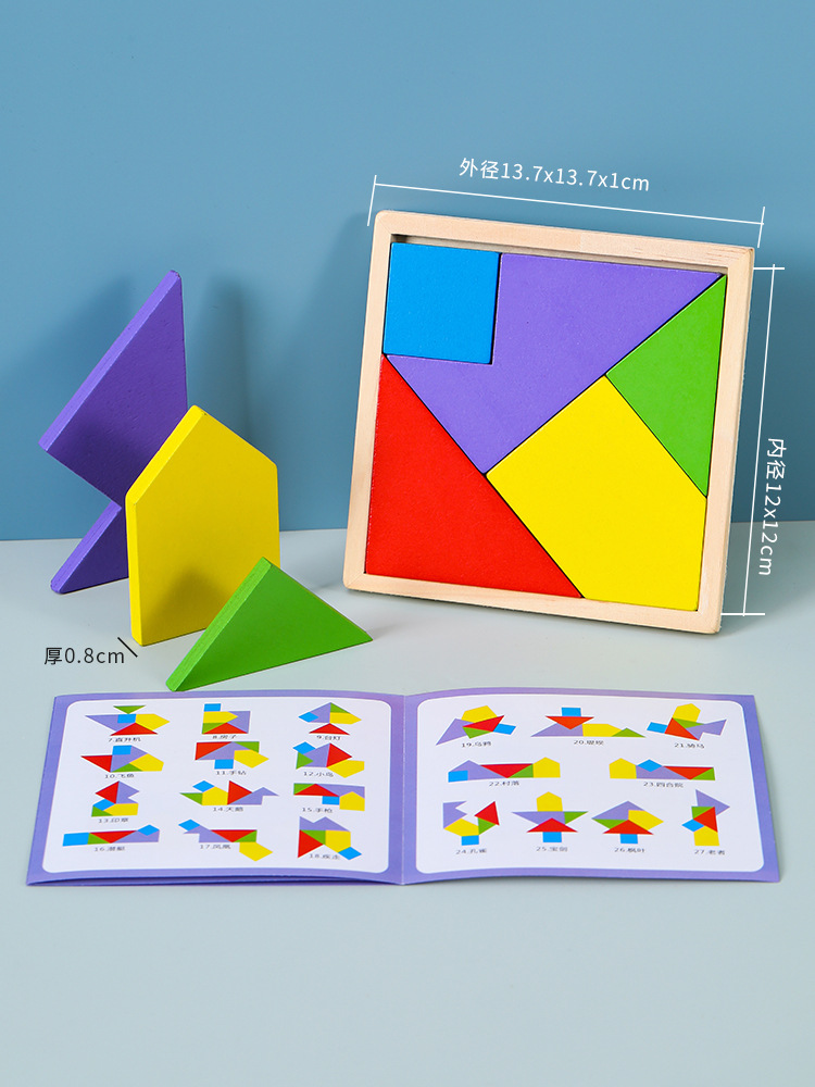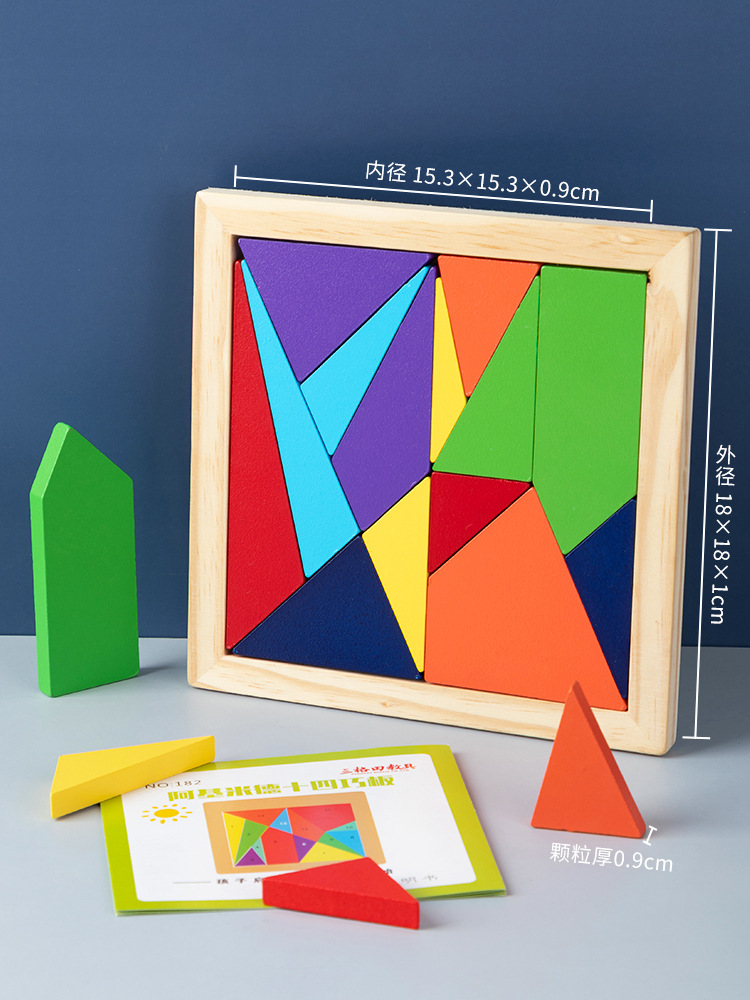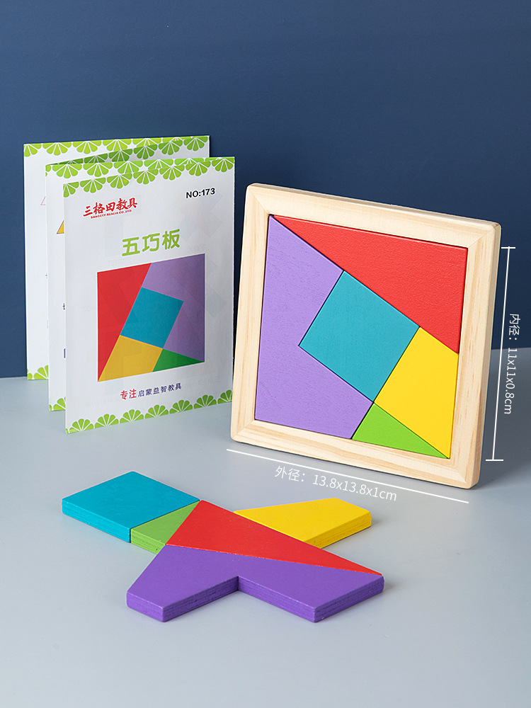 어린이용 탱그램 퍼즐 장난감, 입체 빌딩 블록, 초등학생용 탱그램 조립, 1학년, 목재 이상 실크 꽃스토어 가기