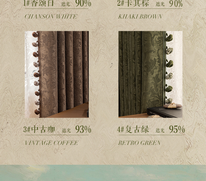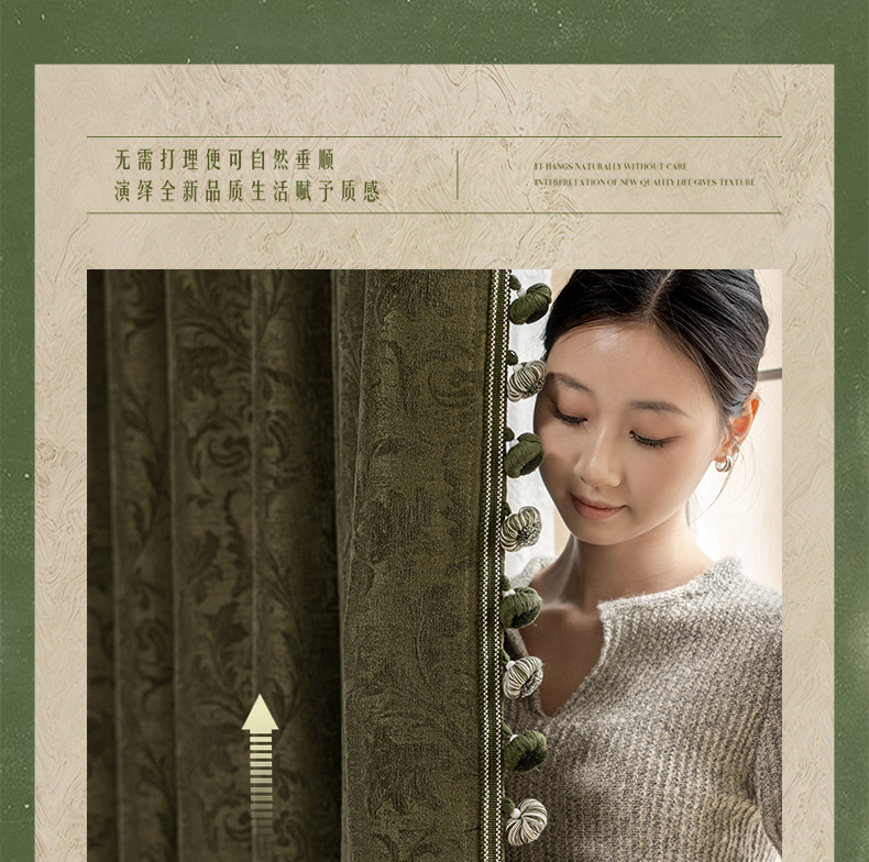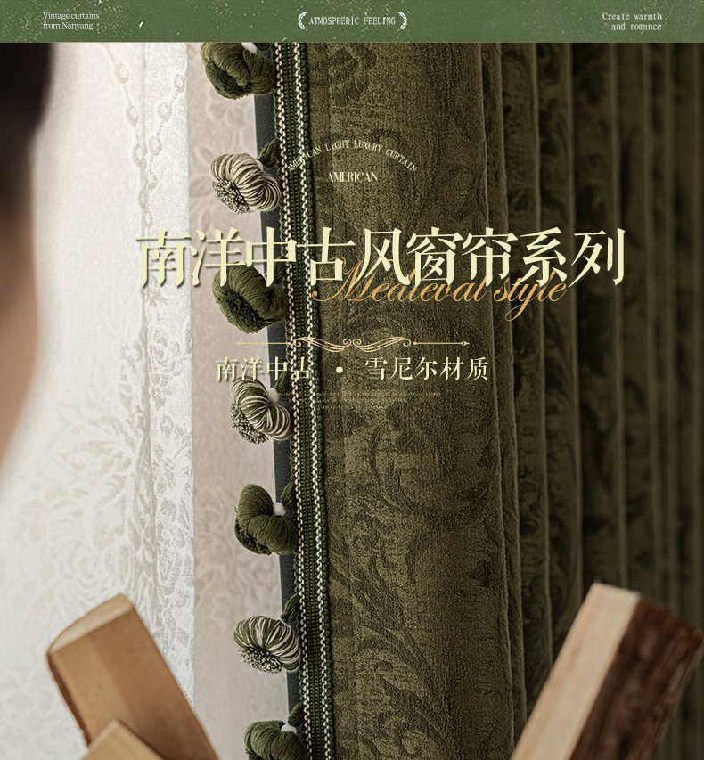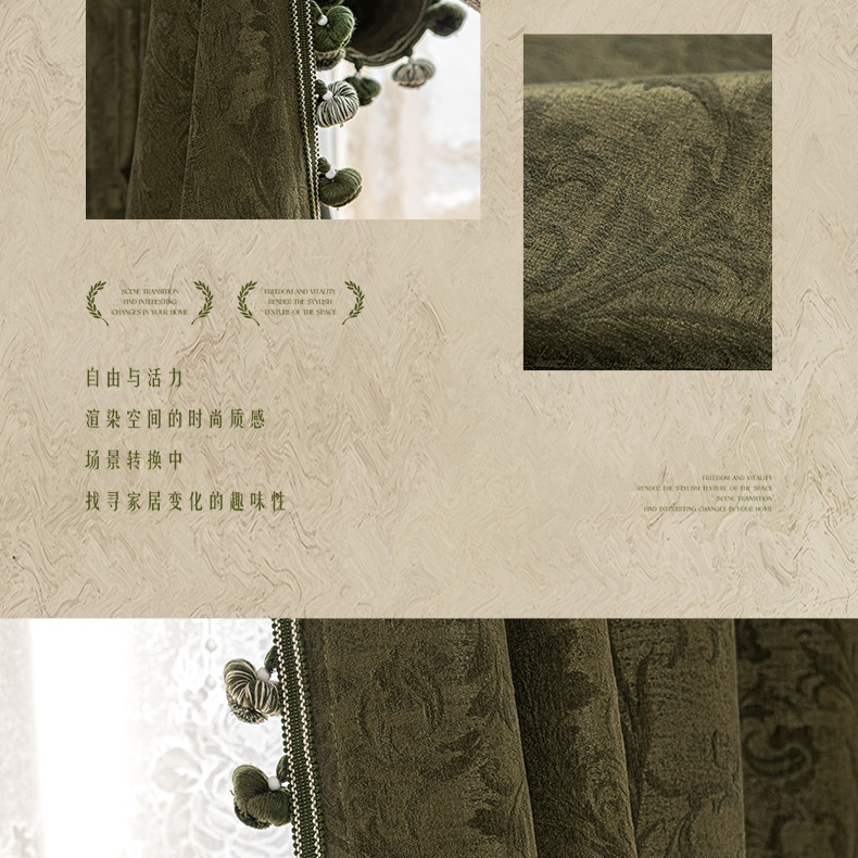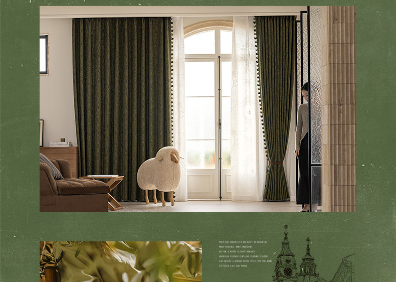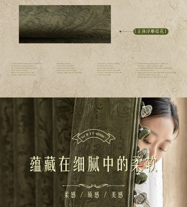[남프랑스 매너] 프랑스 복고풍 녹색 커튼 음영 2025 침실 골동품 미국 chenille 올리브 그린스토어 가기