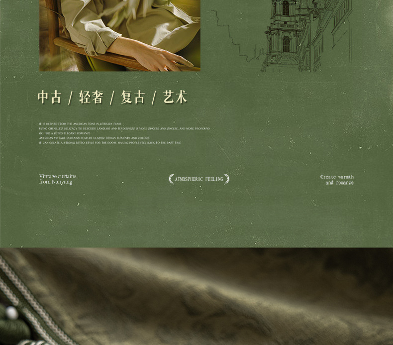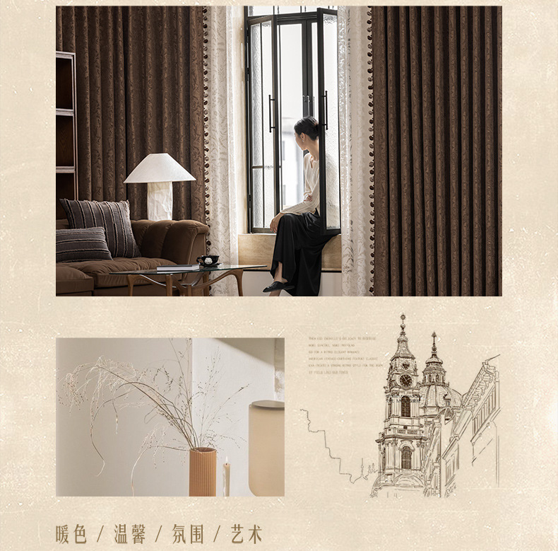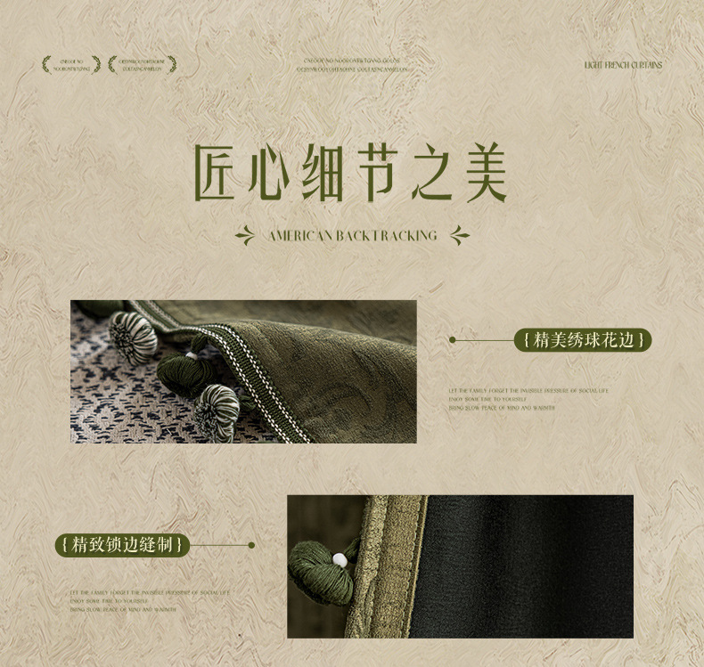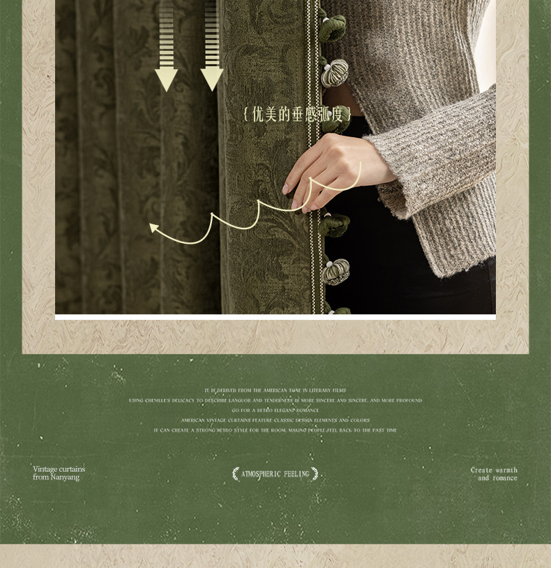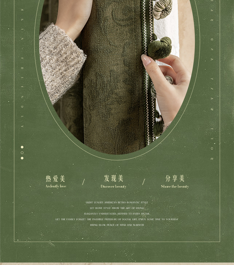[남프랑스 매너] 프랑스 복고풍 녹색 커튼 음영 2025 침실 골동품 미국 chenille 올리브 그린스토어 가기