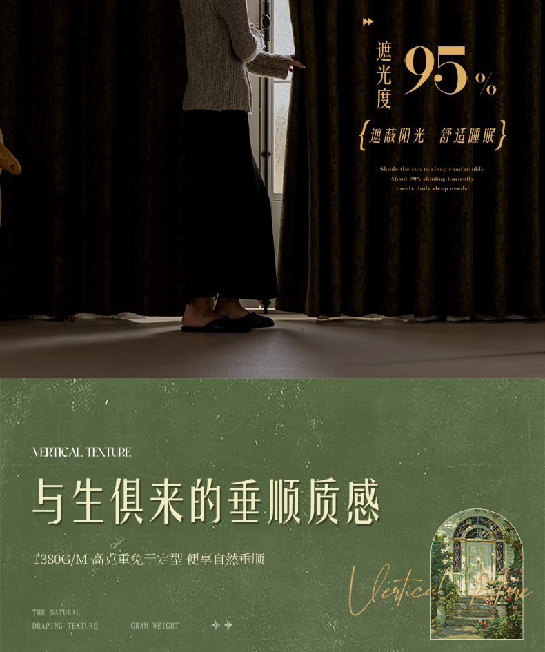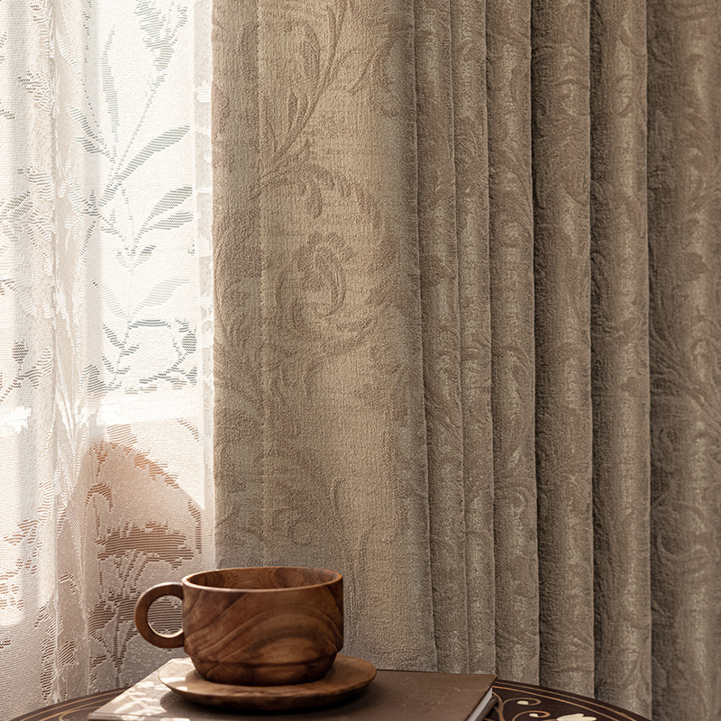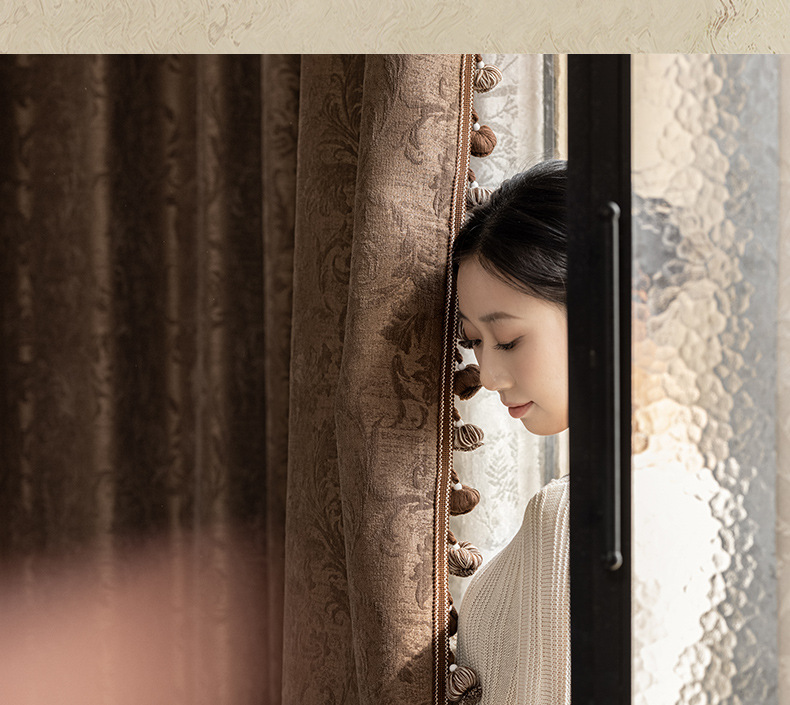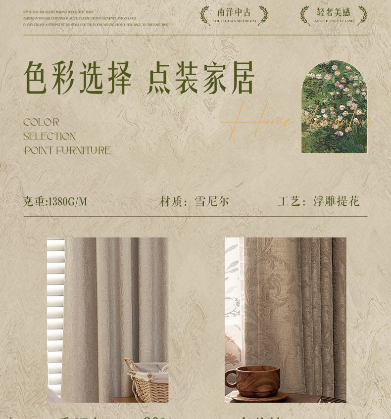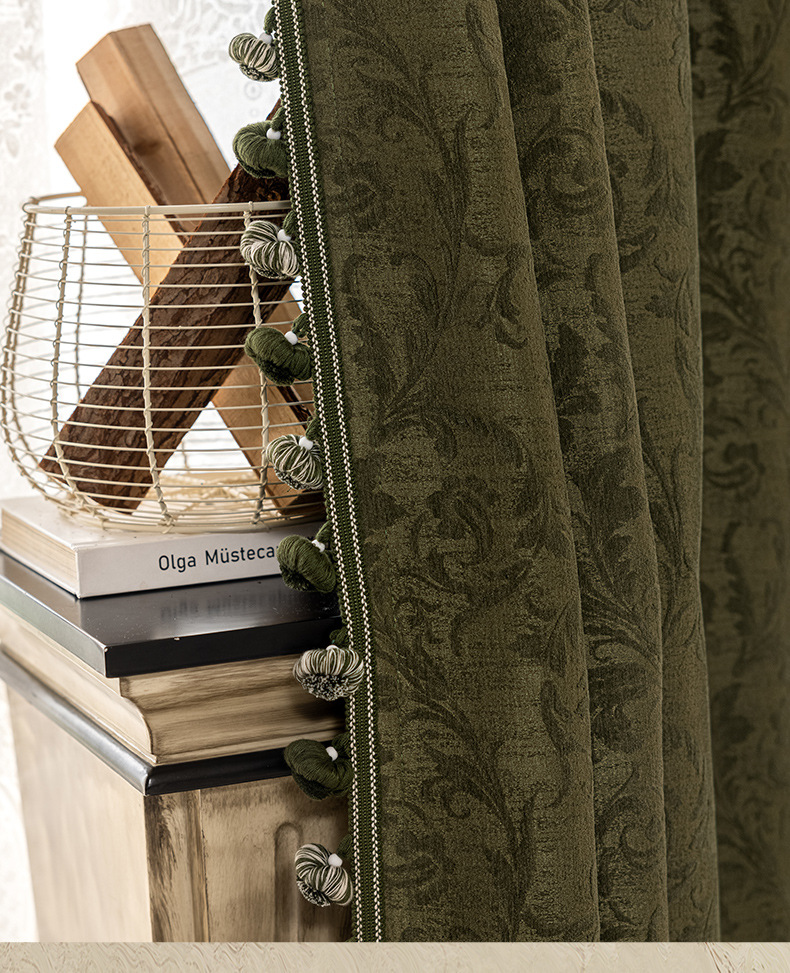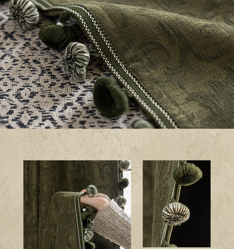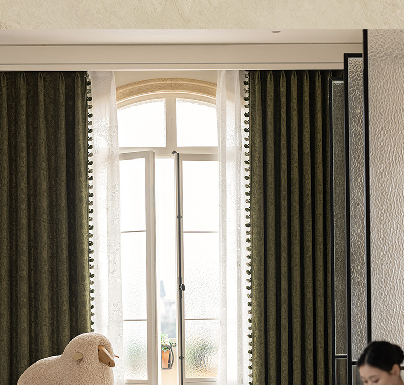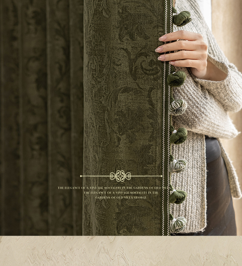 [남프랑스 매너] 프랑스 복고풍 녹색 커튼 음영 2025 침실 골동품 미국 chenille 올리브 그린