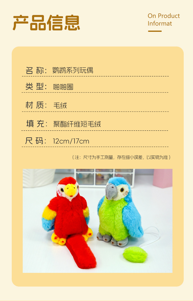 여자 친구 동물원 선물을위한 새로운 귀여운 앵무새 팝 링 시뮬레이션 새 서 어깨 자기 봉제 장난감 인형