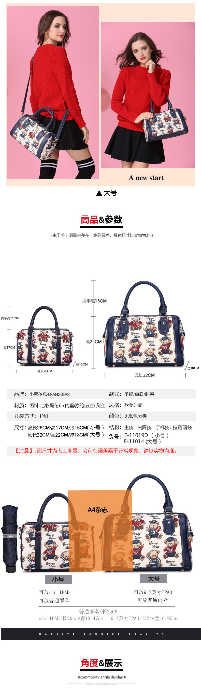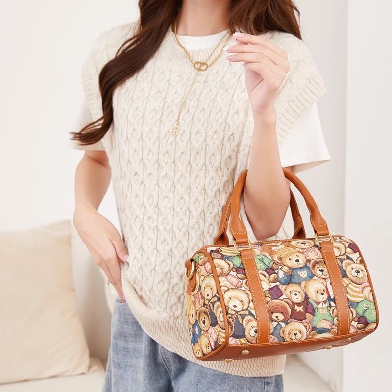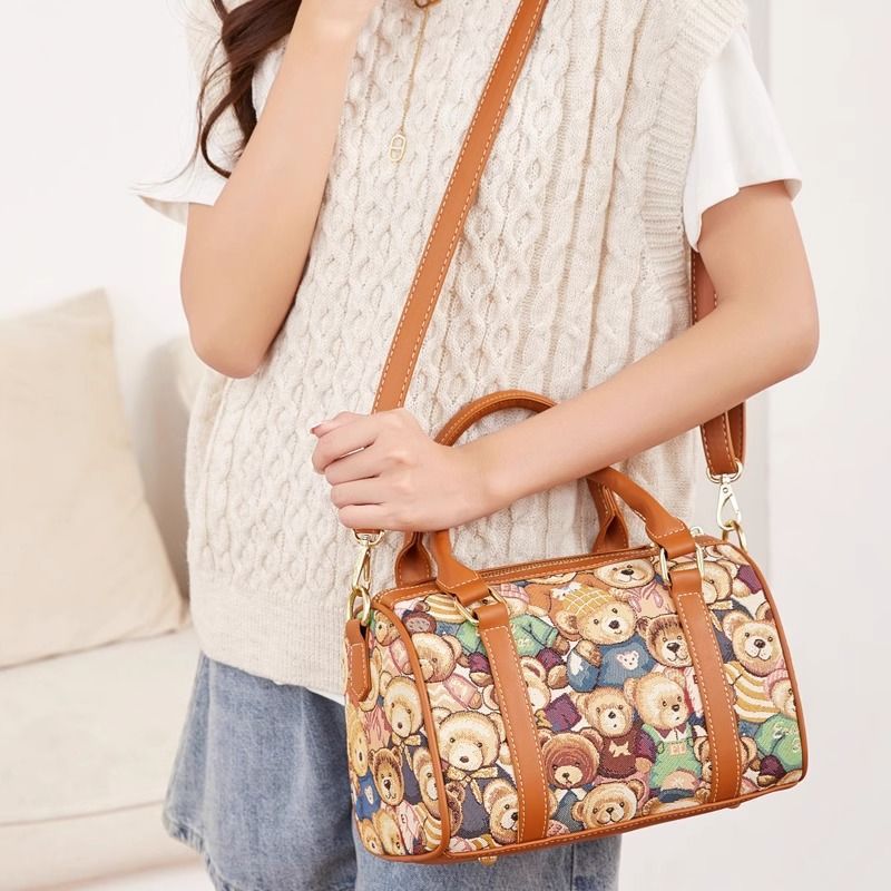 곰돌이 푸우 숄더 핸드백 여성 캔버스 자수 귀여운 대용량 크로스 바디 백 통근 핸드백 보스턴스토어 가기
