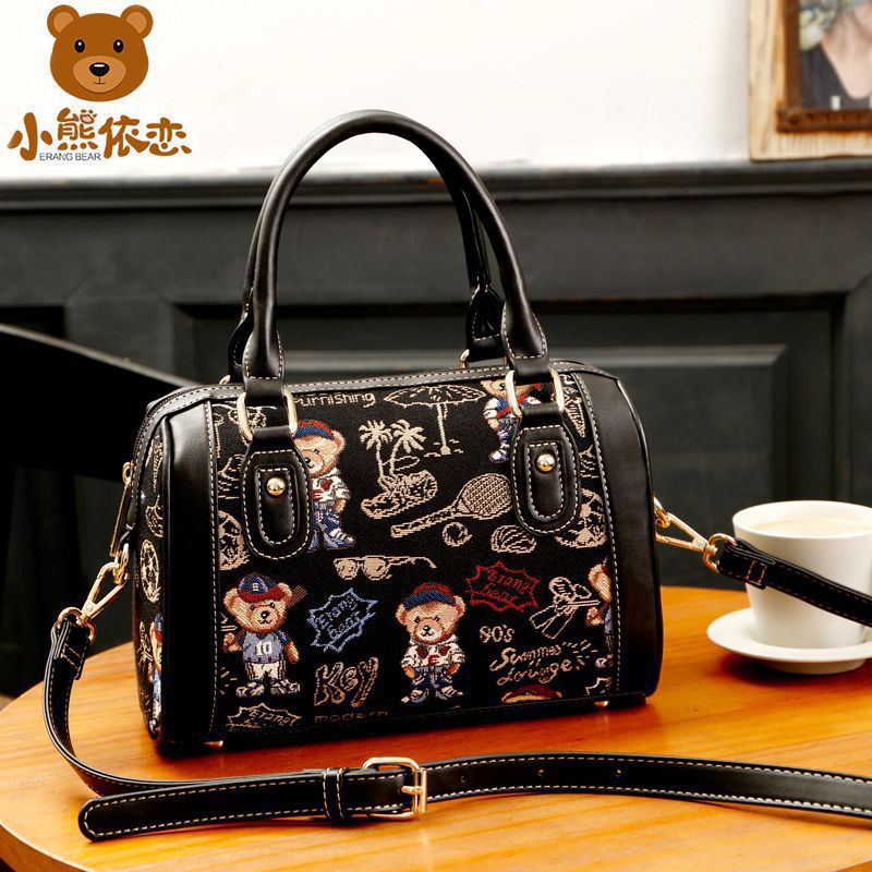 곰돌이 푸우 숄더 핸드백 여성 캔버스 자수 귀여운 대용량 크로스 바디 백 통근 핸드백 보스턴