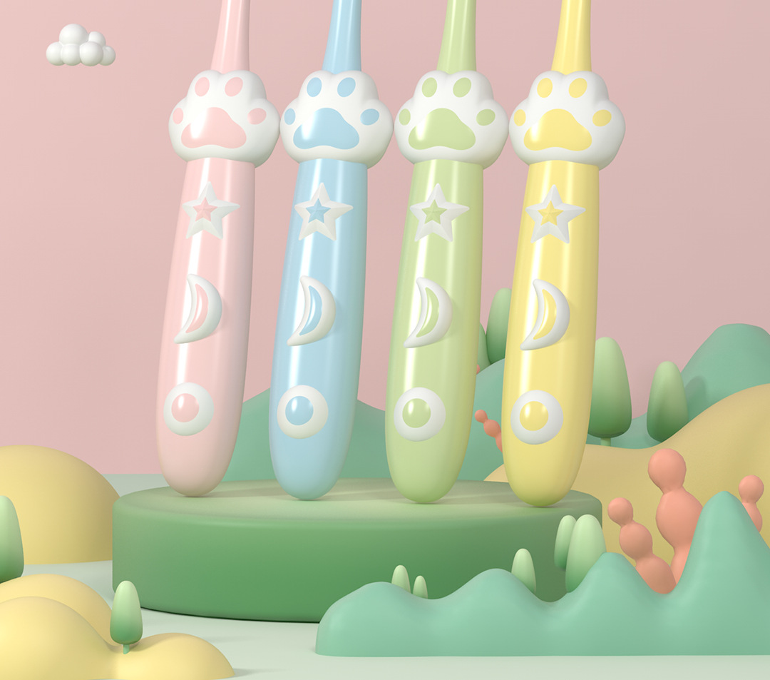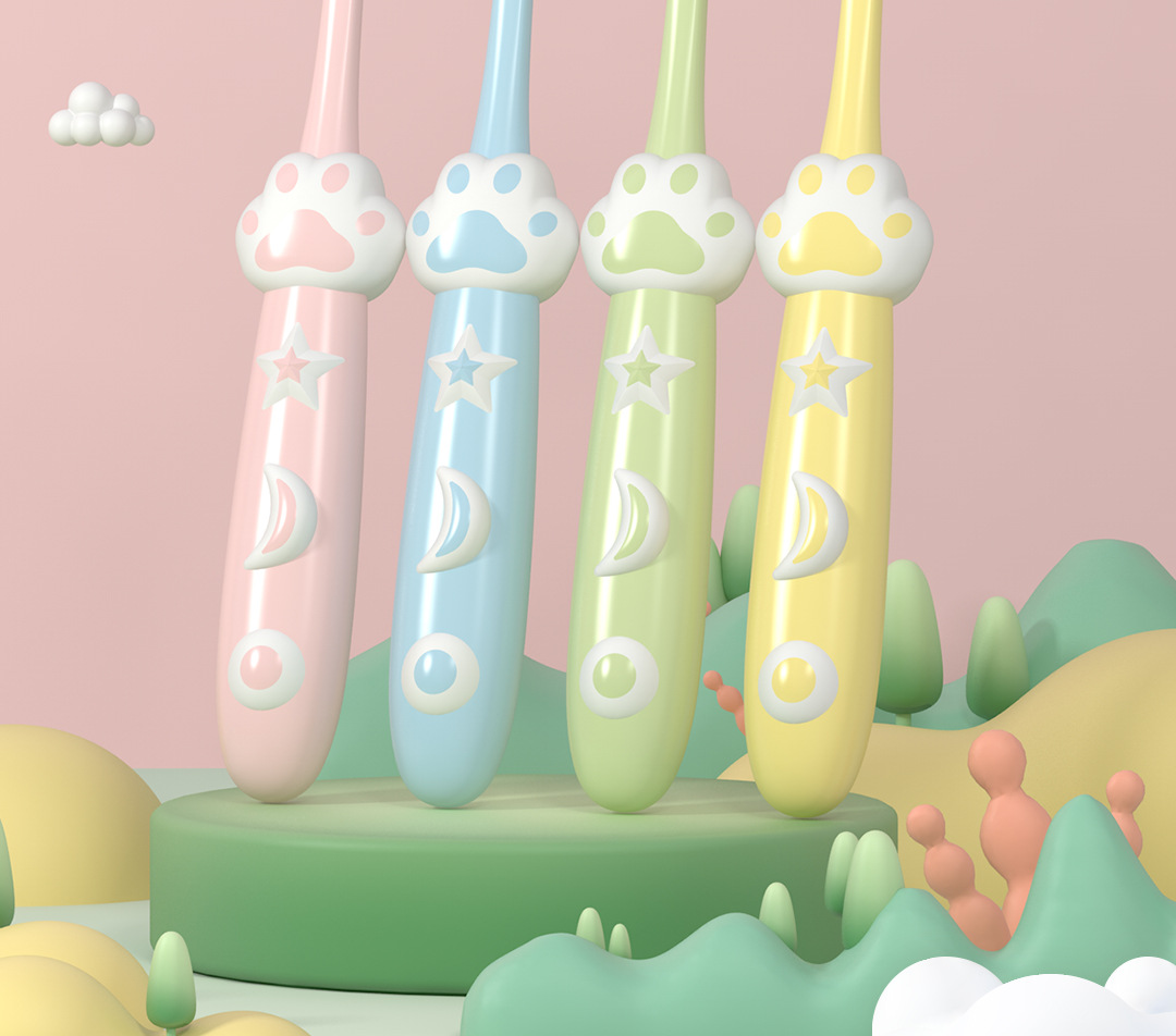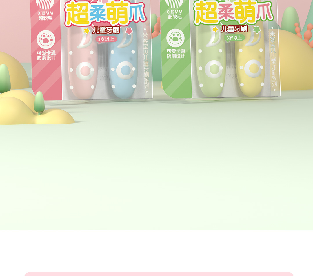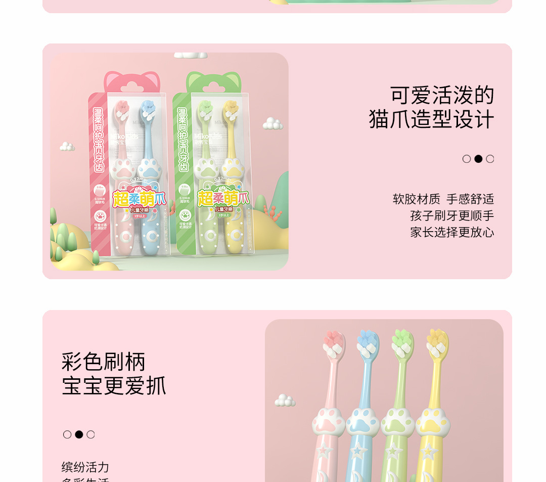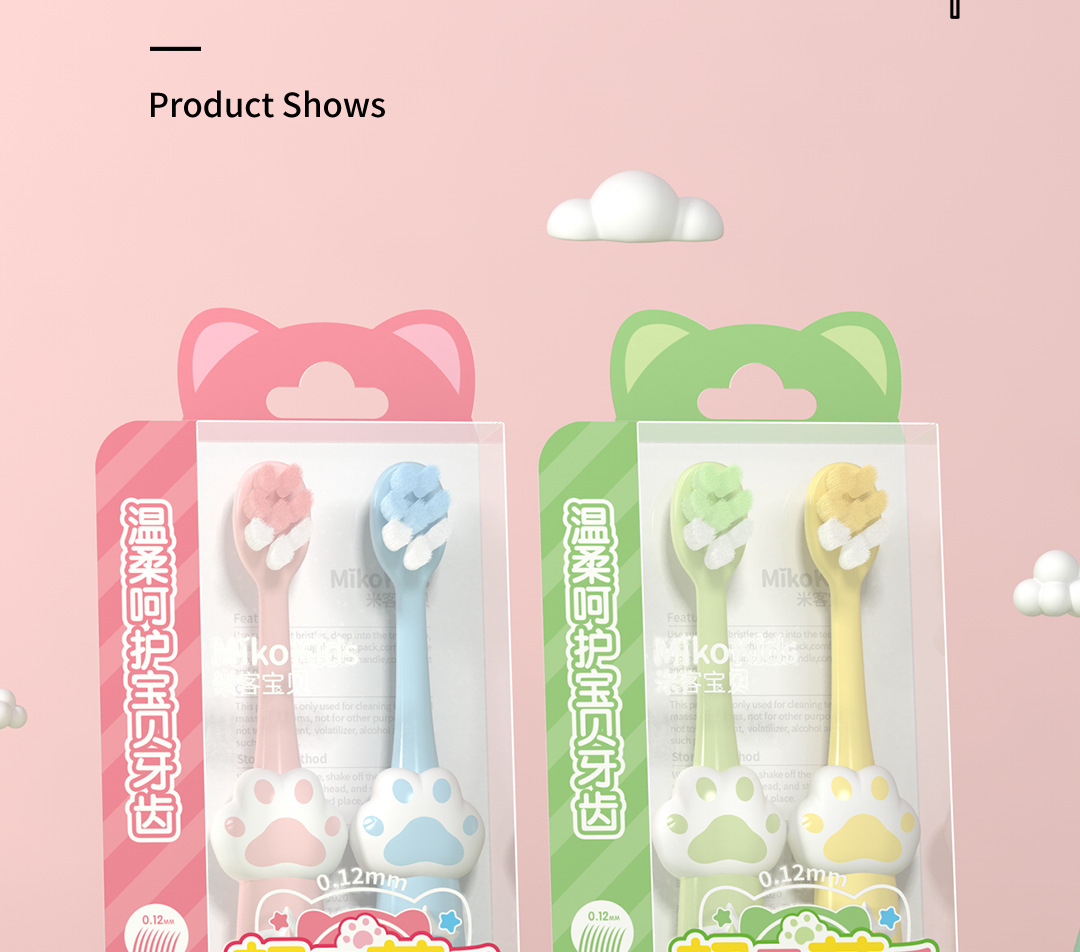어린 이용 부드러운 강모 칫솔 치아 보호 귀여운 고양이 발톱 모양 치아 청소 치은 보호 이중 팩 제조 업체에 따라 도매