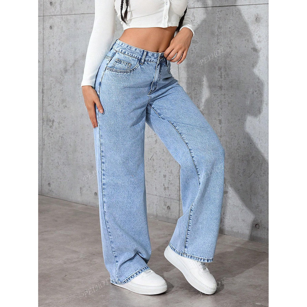 여성을위한 크로스 보더 아메리칸 레트로 드레이프 청바지 2025 여름 새로운 하이 웨이스트 와이드 레그 루즈 스트레이트 롱 팬츠스토어 가기