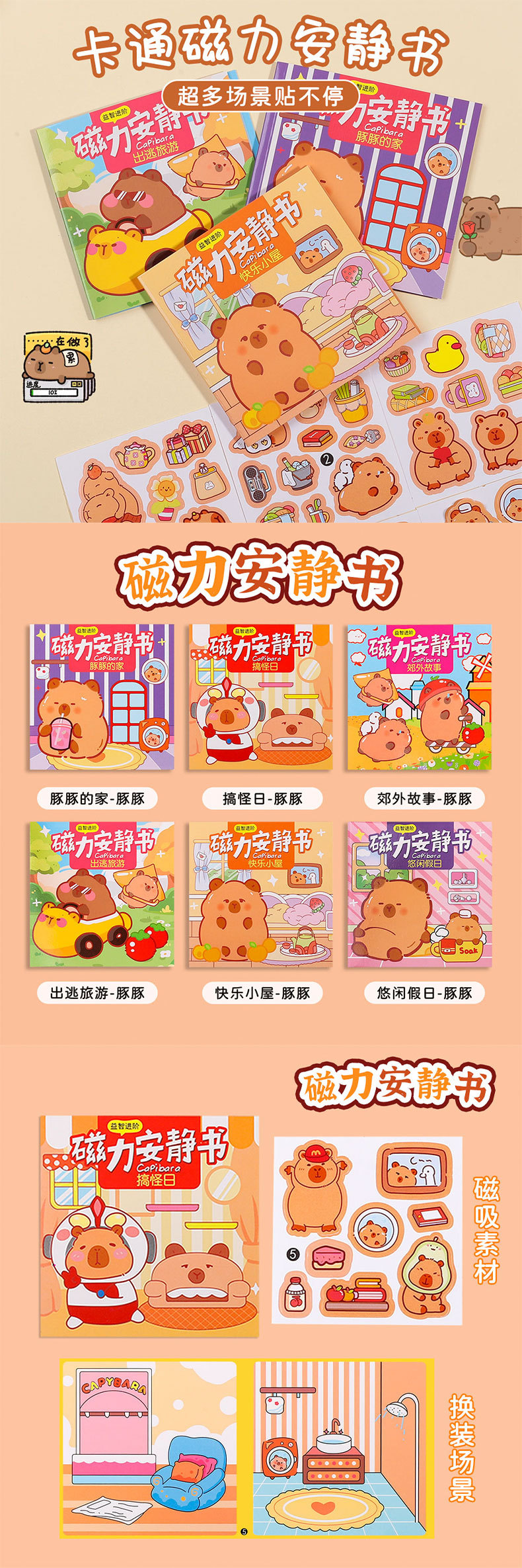 [새로운 업그레이드 자기 모델] Kapibala 자기 조용한 책 새로운 절단 없는 소녀와 어린이 자기 스티커