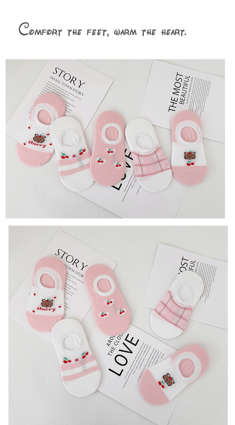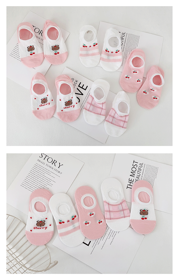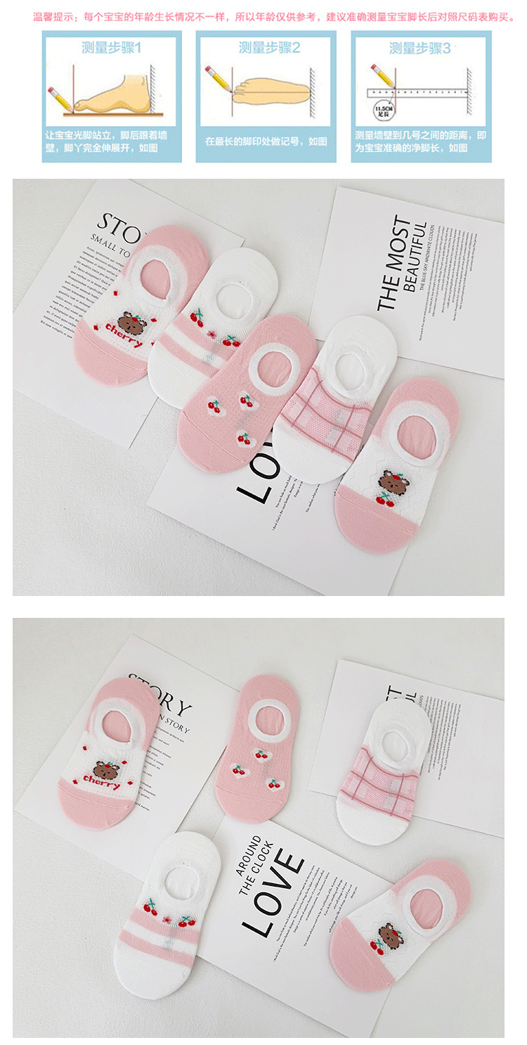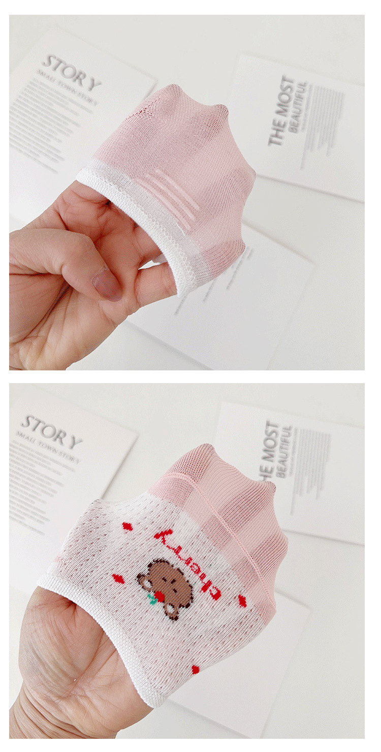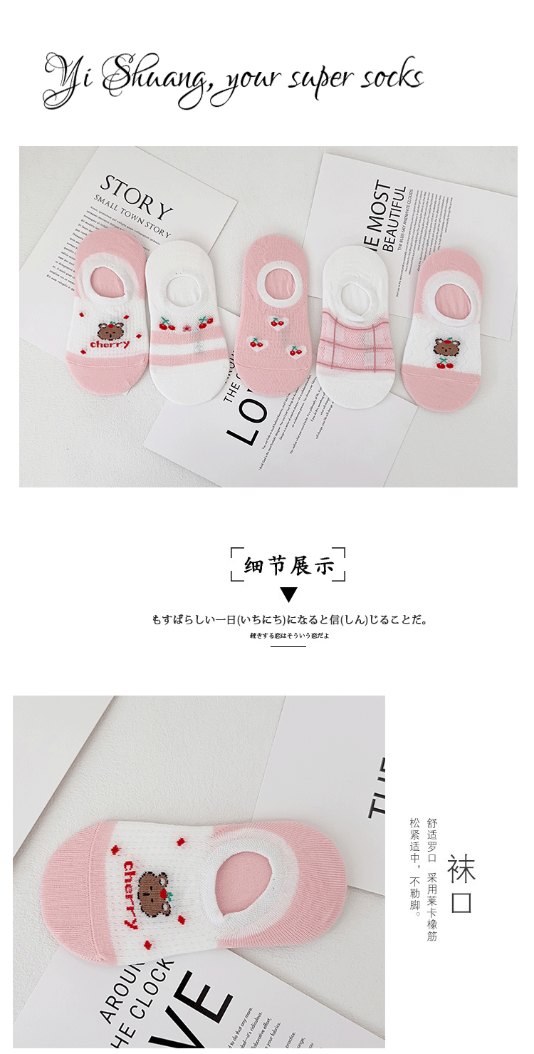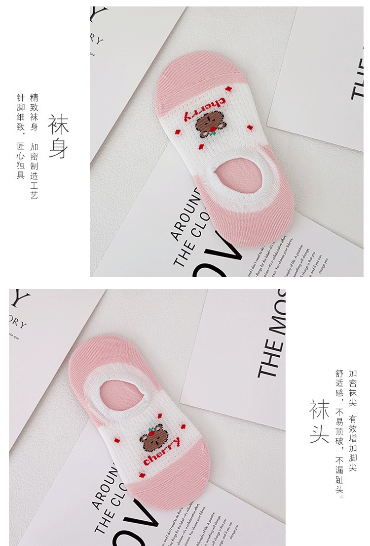 Yishuangshuang 어린이 양말 여름 메쉬 통기성 만화 곰 보트 양말 빗질면 여성 핑크 페디언트 보이지 않는 양말스토어 가기