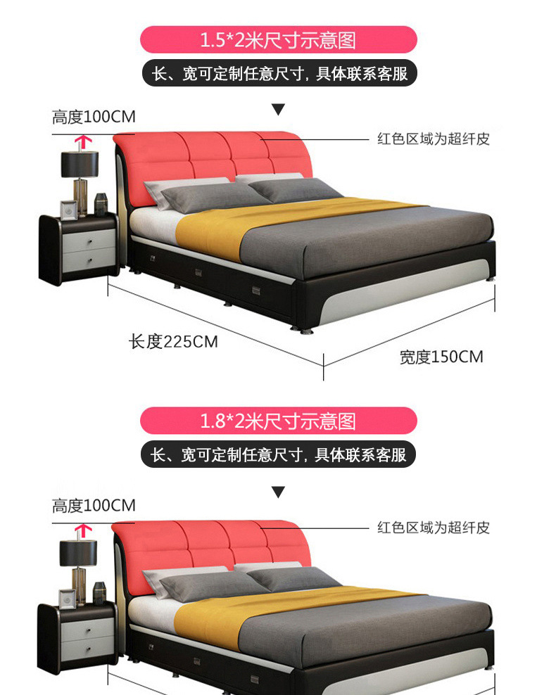 더블 침대 모던 미니멀리스트 가죽 침대 1.68m 1.2공주 침대 마스터 침실 다다미 2m 대형 침대 dropshipping