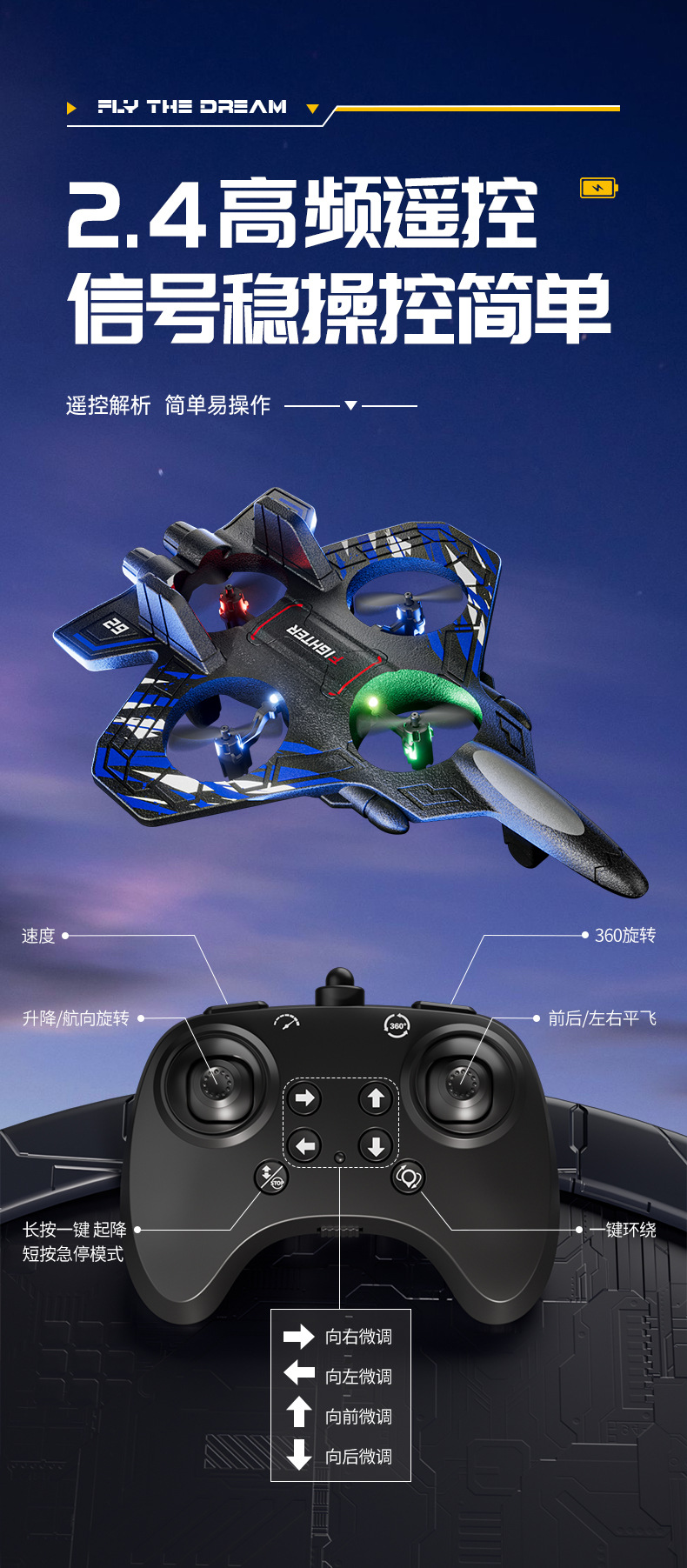 새로운 원격 제어 항공기 어린이 전투기 글라이더 4 축 드론 작은 소년 드롭 배송 도매스토어 가기