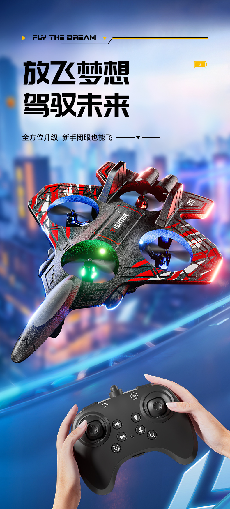 새로운 원격 제어 항공기 어린이 전투기 글라이더 4 축 드론 작은 소년 드롭 배송 도매