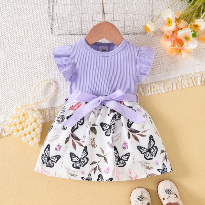 2025 새로운 여름 소녀 플라잉 슬리브 드레스 어린이 꽃 패션 베이비 프린트 공주 스커트