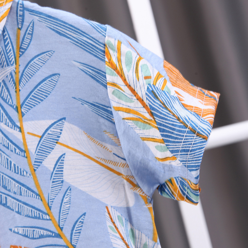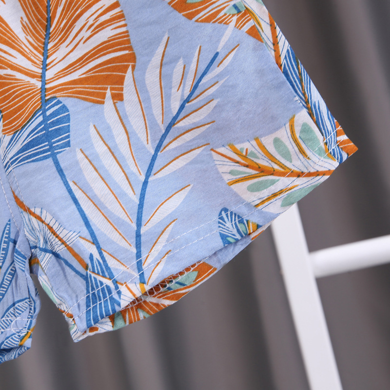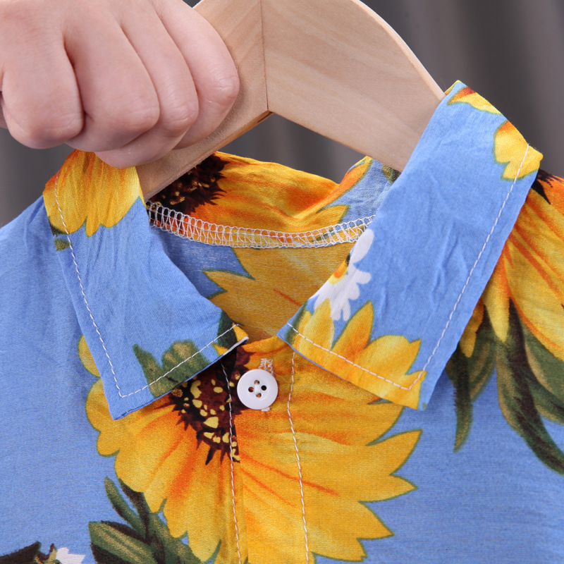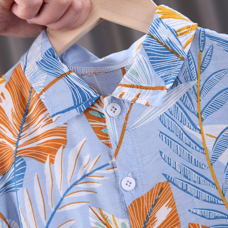 소년 반팔 꽃무늬 셔츠 어린이 여름 해변 셔츠 반바지 투피스 세트 2024 새로운 유행 유아 의류스토어 가기
