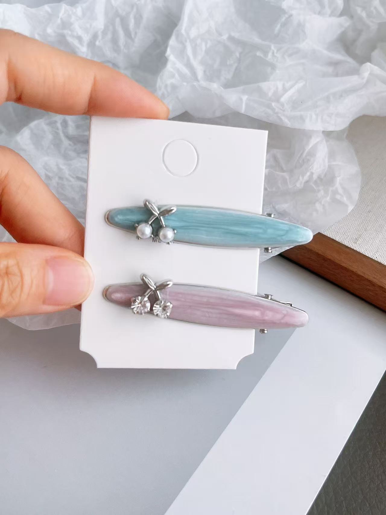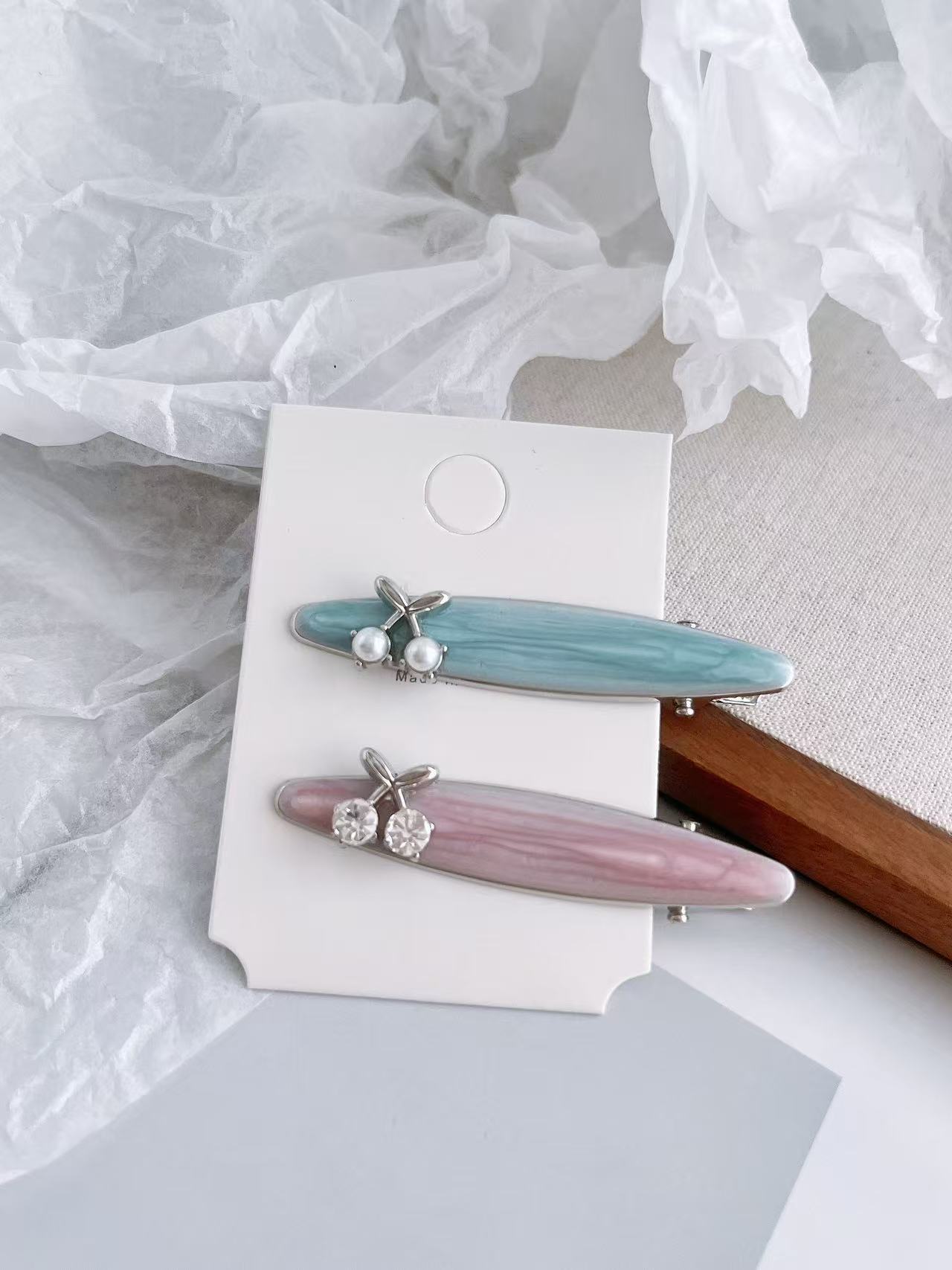 여름 체리 신선한 덕빌 클립 여성용 귀여운 소녀 금속 전면 골절 헤어 사이드 뱅 클립 고급 헤어 액세서리스토어 가기