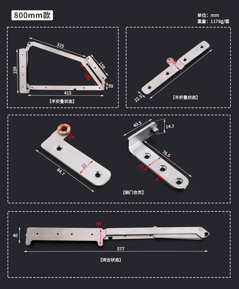 스테인레스 스틸 90도 접이식 도어 하드웨어 액세서리 하단 레일 없음 스윙 접이식 도어 목재 도어 접이식 도어 힌지 힌지 커넥터스토어 가기