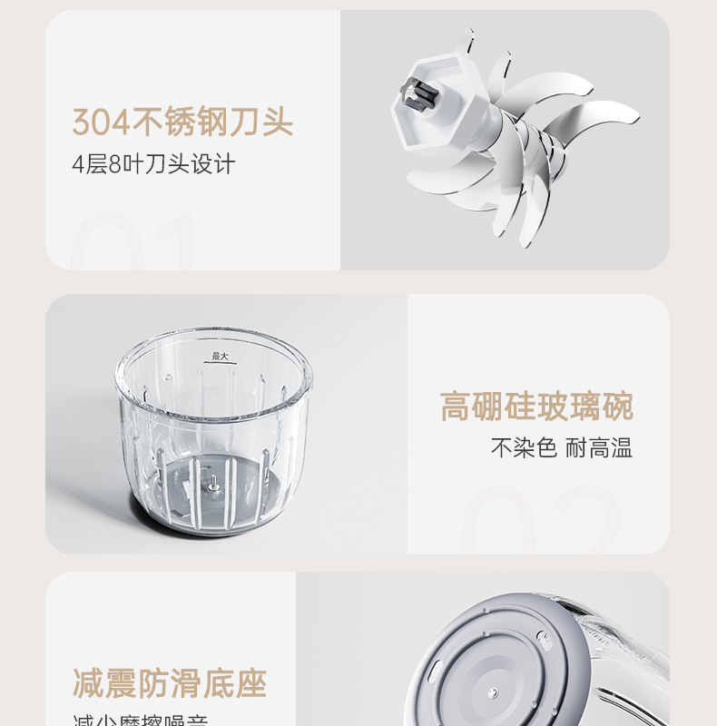 • 식품 보충 기계 + 원형 유리 식품 보충 상자 130ml*3