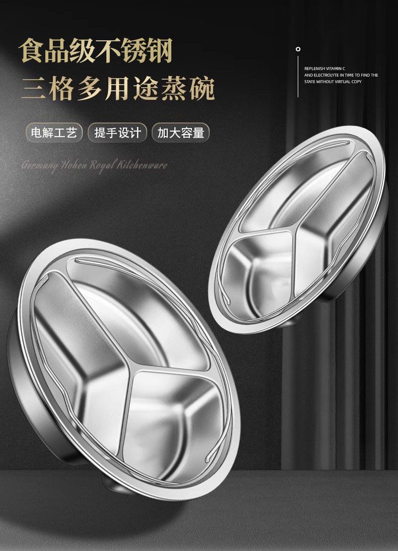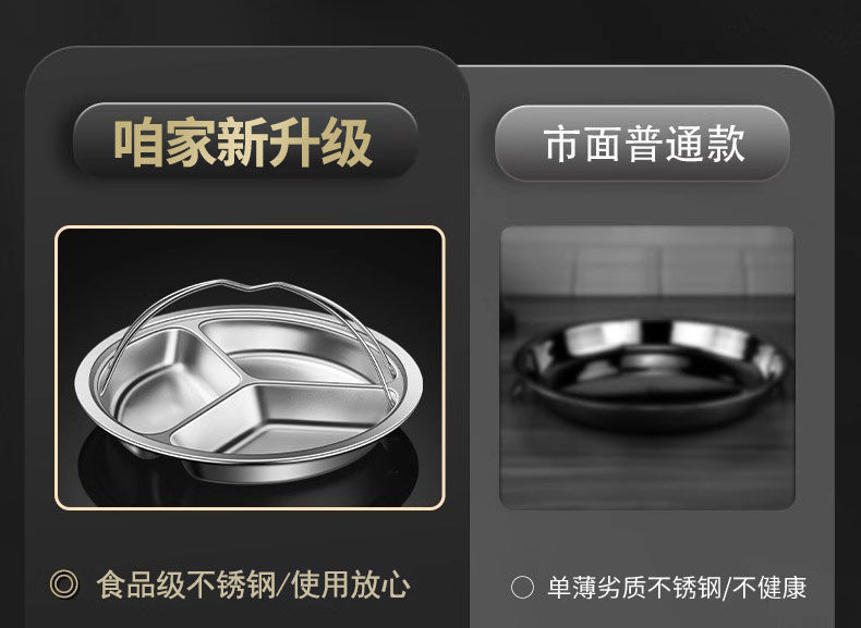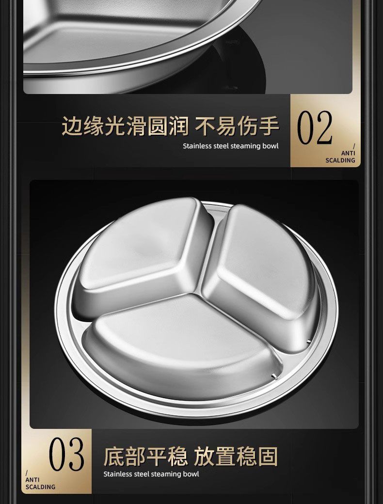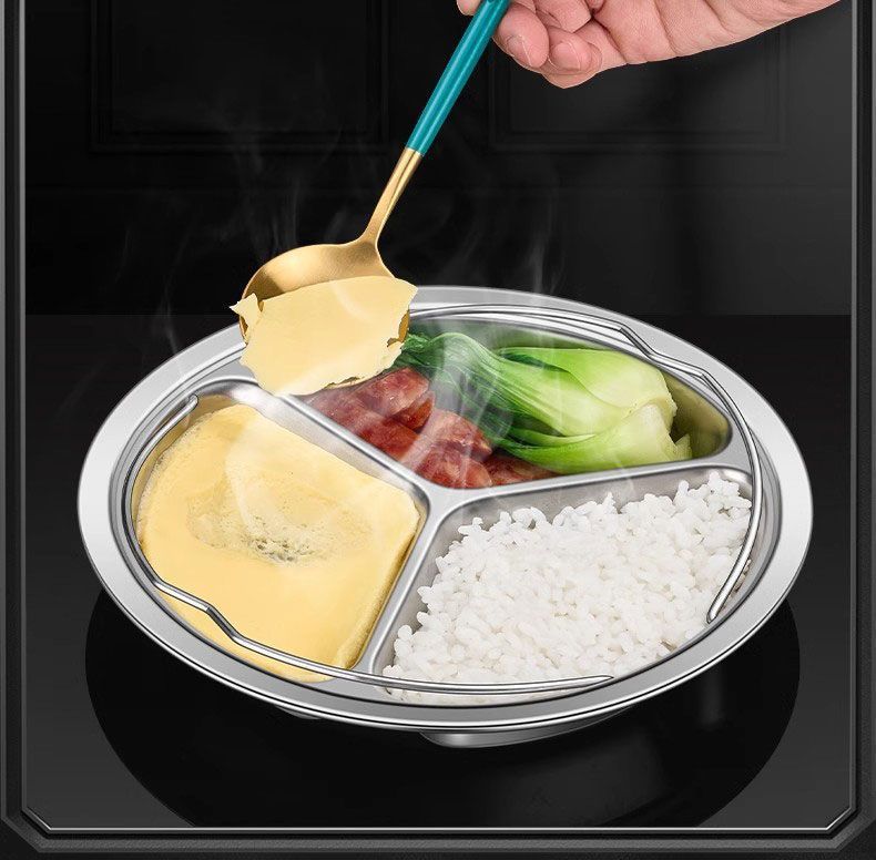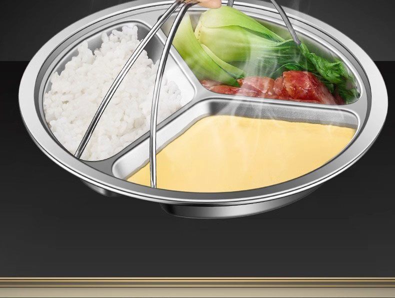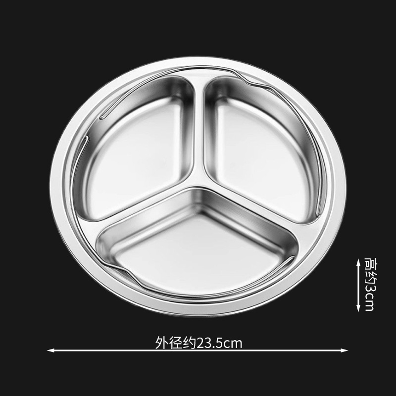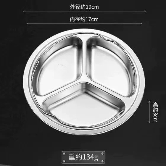 제조업체 304 스테인레스 스틸 3 그리드 디너 플레이트 분리 디스크 학생 어린이 유치원 캔틴 디너 플레이트 3 그리드 원형스토어 가기
