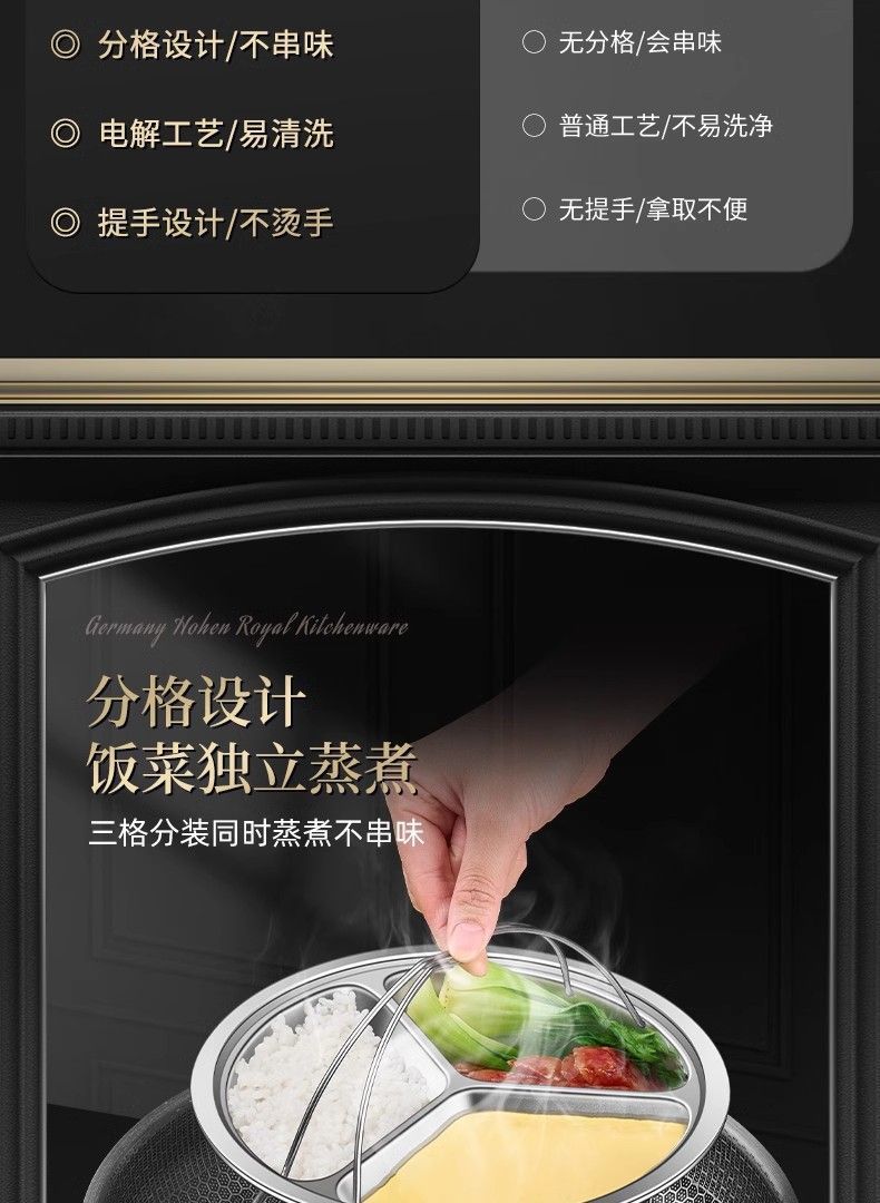 • [중형 22cm 3칸 찜 트레이] 휴대용 다기능