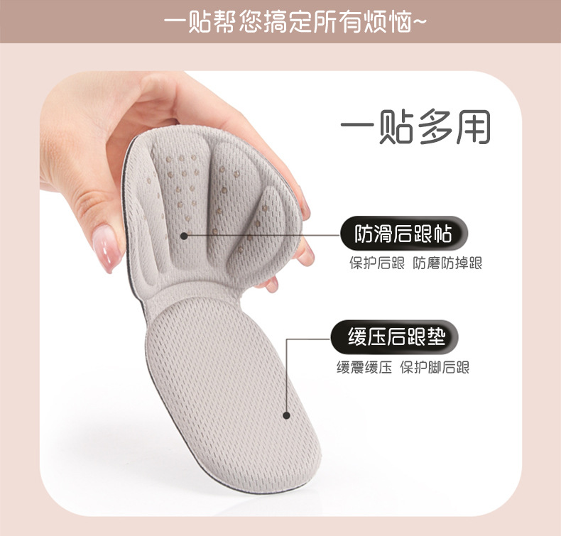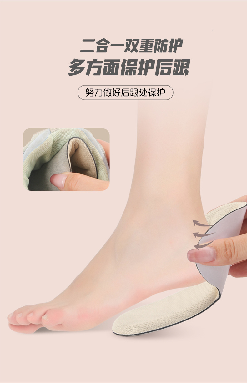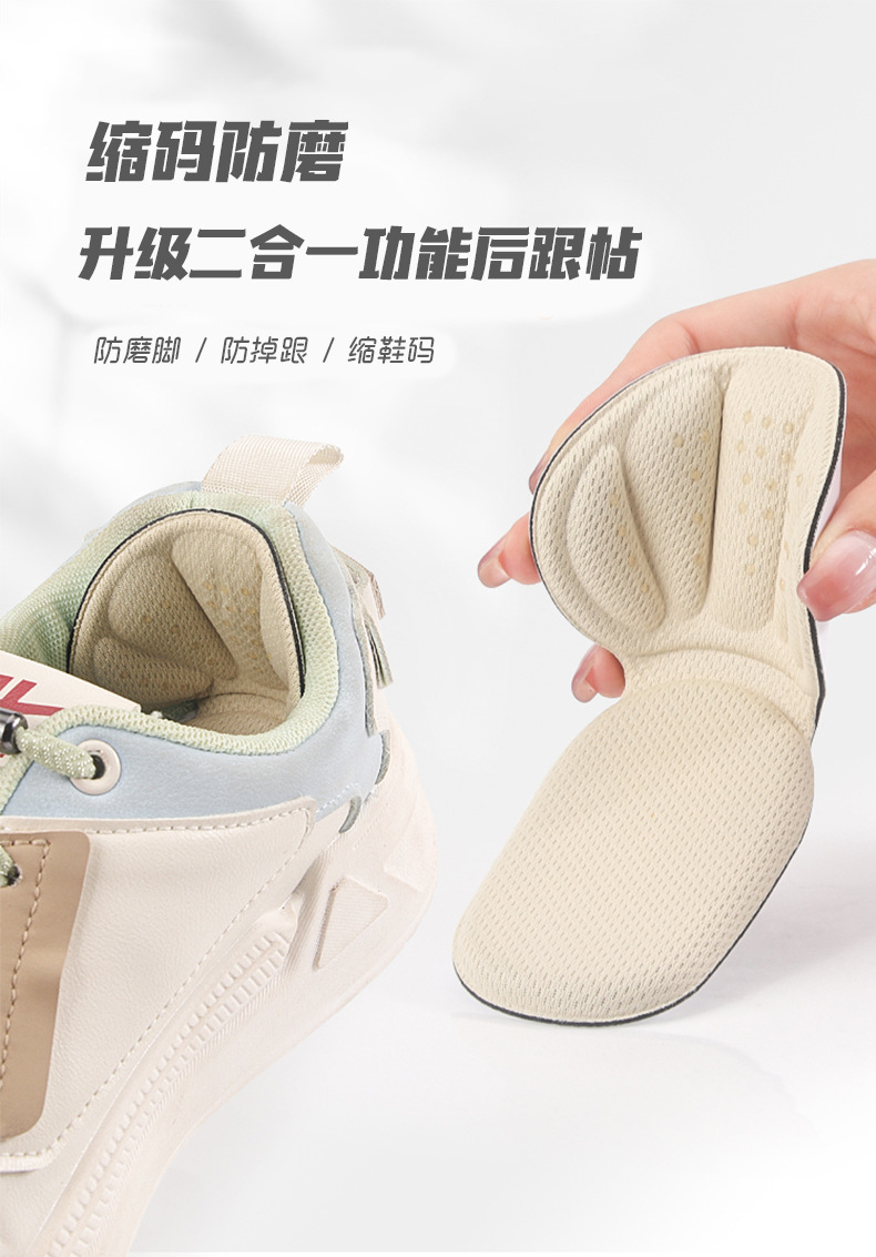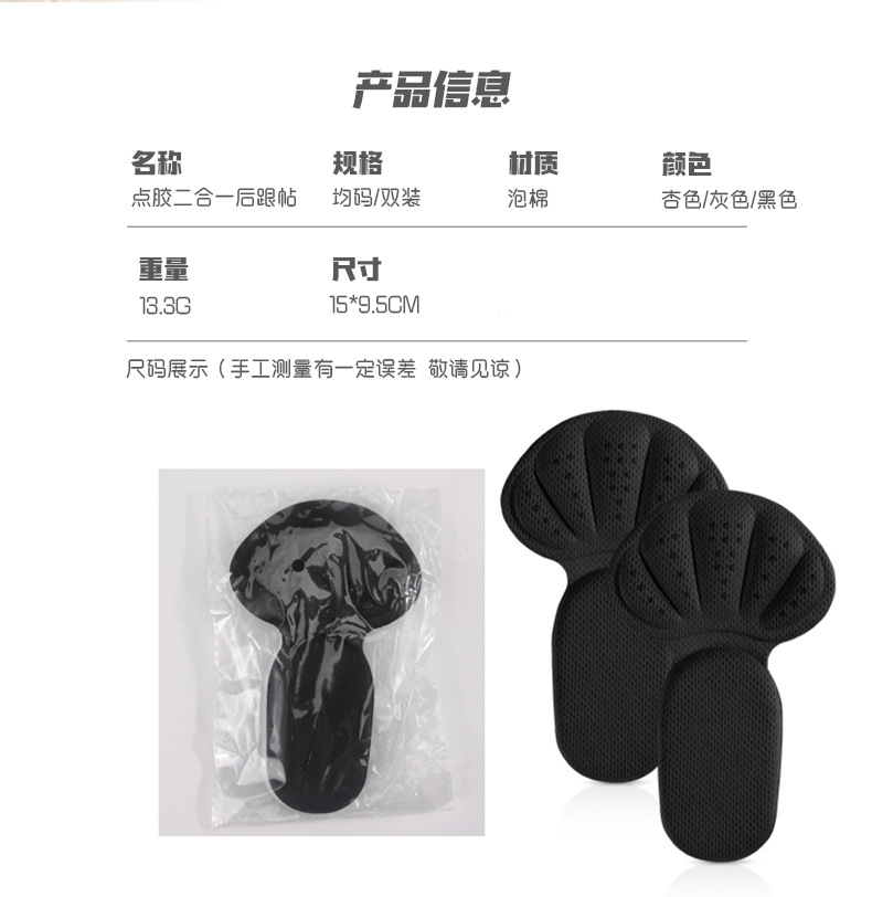 발뒤꿈치 떨어지는 것을 방지하고 발을 마모하는 것을 방지하는 부드럽고 두꺼운 투인원 발뒤꿈치 스티커, 여성용 하프 사이즈 깔창, 큰 발뒤꿈치 스티커를 작은 발뒤꿈치 스티커로 변경