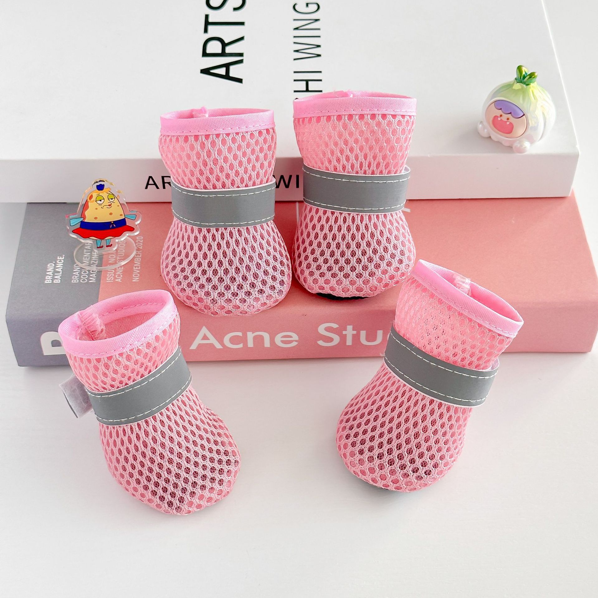 애완견 신발, 스포츠 부드러운 밑창 신발, 통기성, 경량, 반사, 소형견 낙하 방지, 미끄럼 방지, 내마모성, 구멍 메쉬 신발