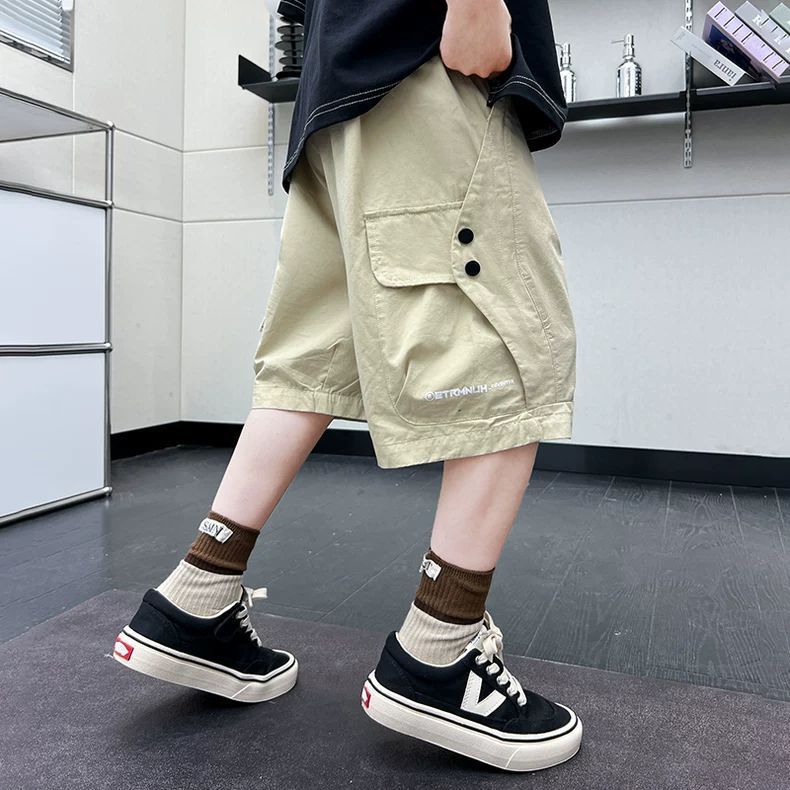 남아용 카고 반바지 여름 얇은 중대형 아동 여름 바지 5부 중간 바지 2025 새로운 스타일 캐주얼하고 멋집니다.