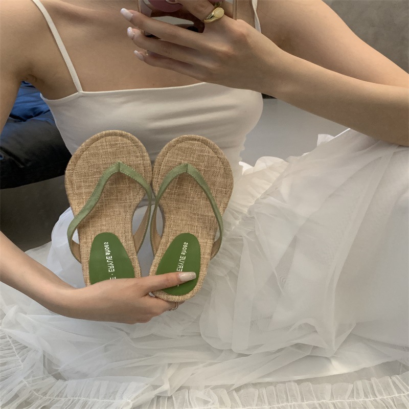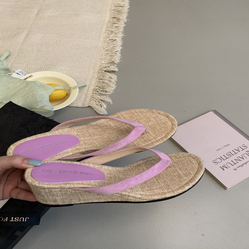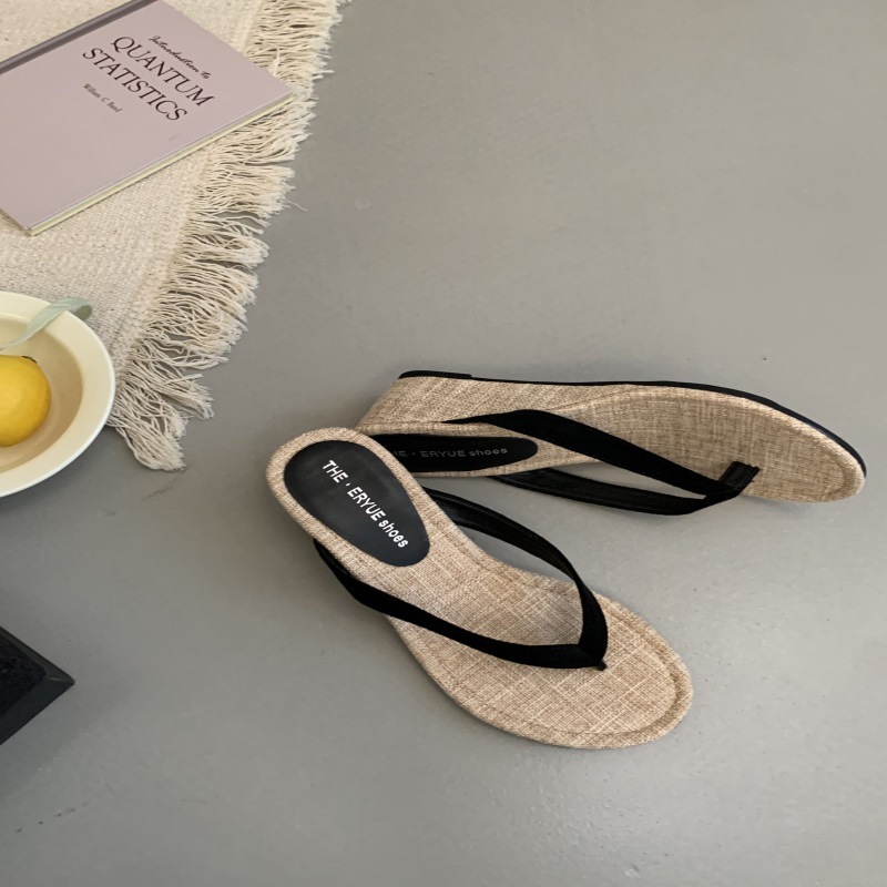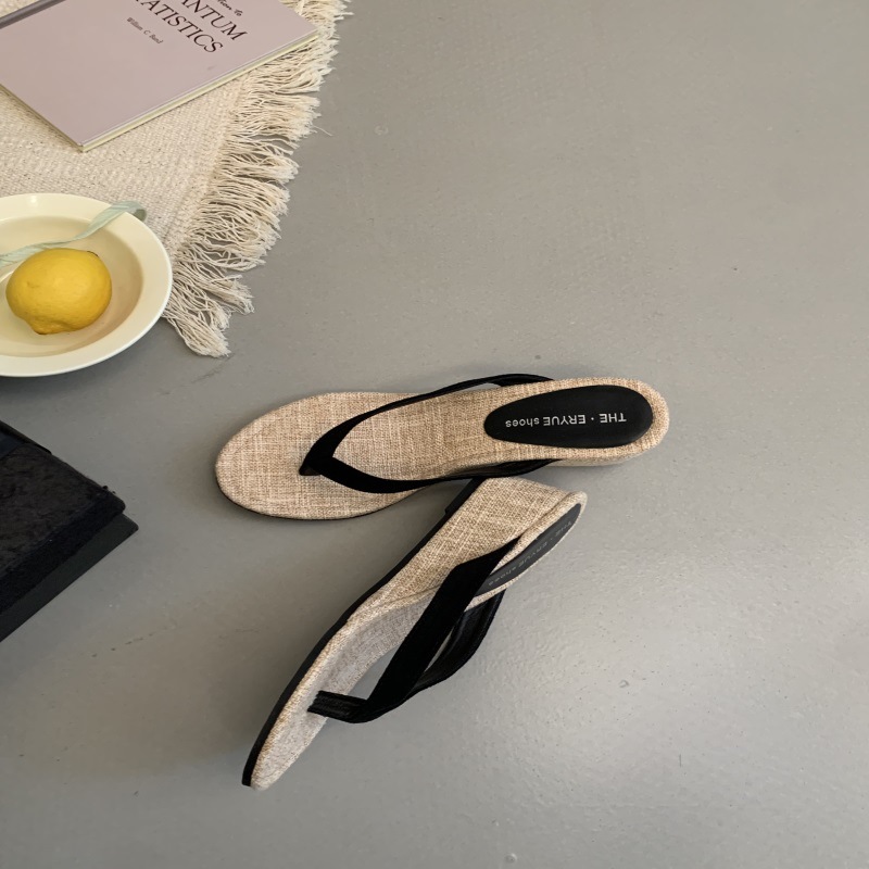여성용 프렌치 니치 두꺼운 밑창 하프 슬리퍼, 2025 여름 헤링본 플립플롭, 휴가 해변 키높이 샌들