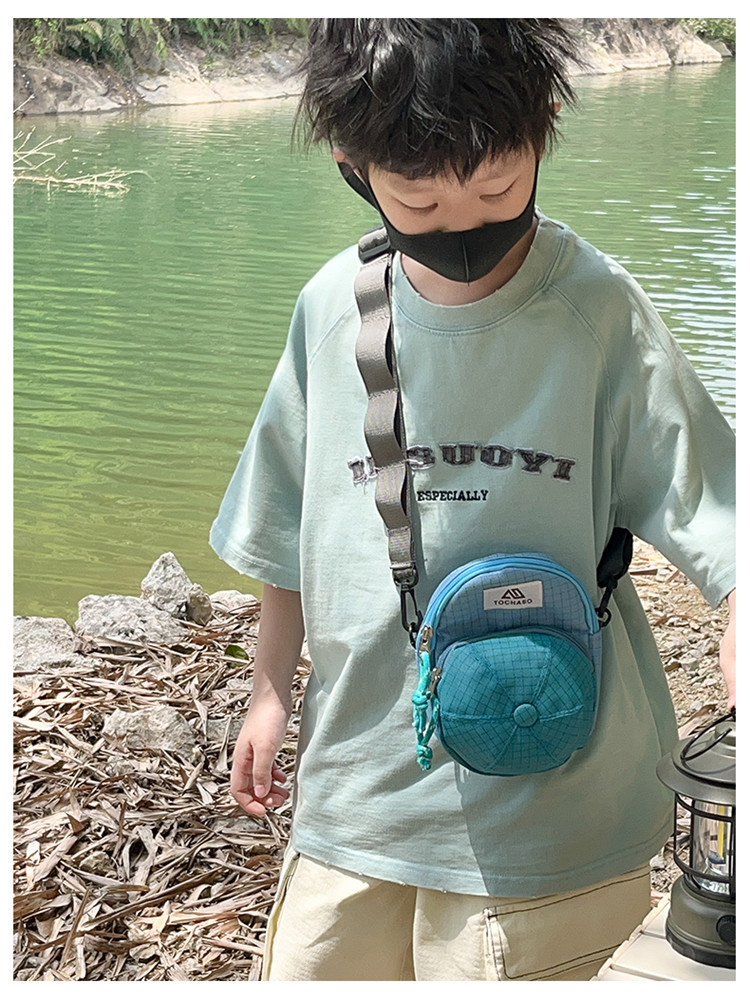 어린이 가방 2025 새로운 유행 소년 크로스 바디 가방 야외 여행 한국어 대비 색상 어깨 가방 동전 지갑